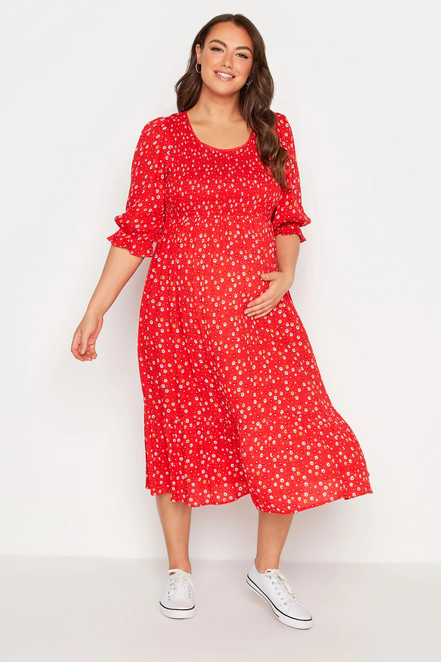 Craquez pour notre robe rouge floral midi Bump it up Maternity. Ravissante et confortable, vous allez adorer la porter durant votre grossesse.