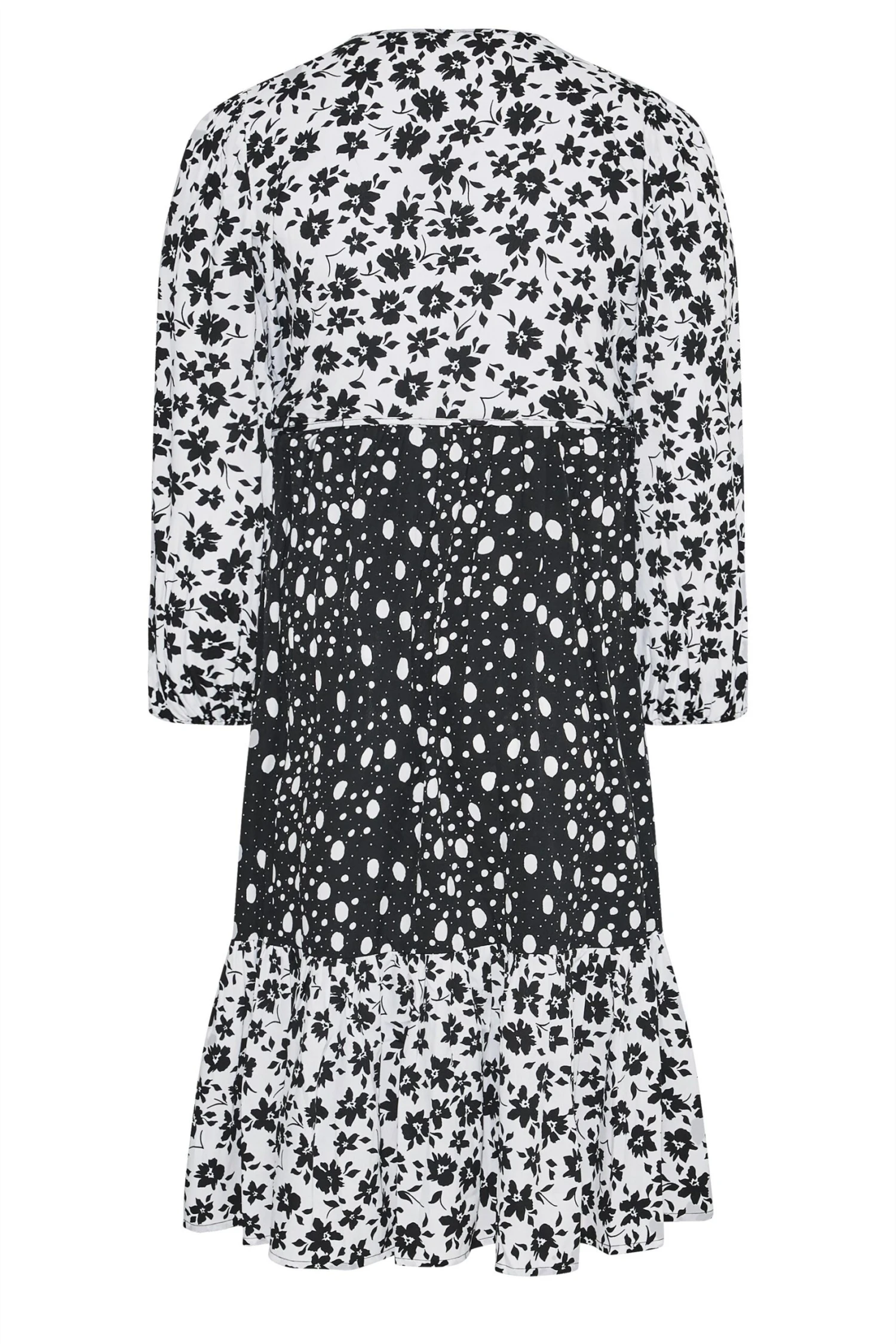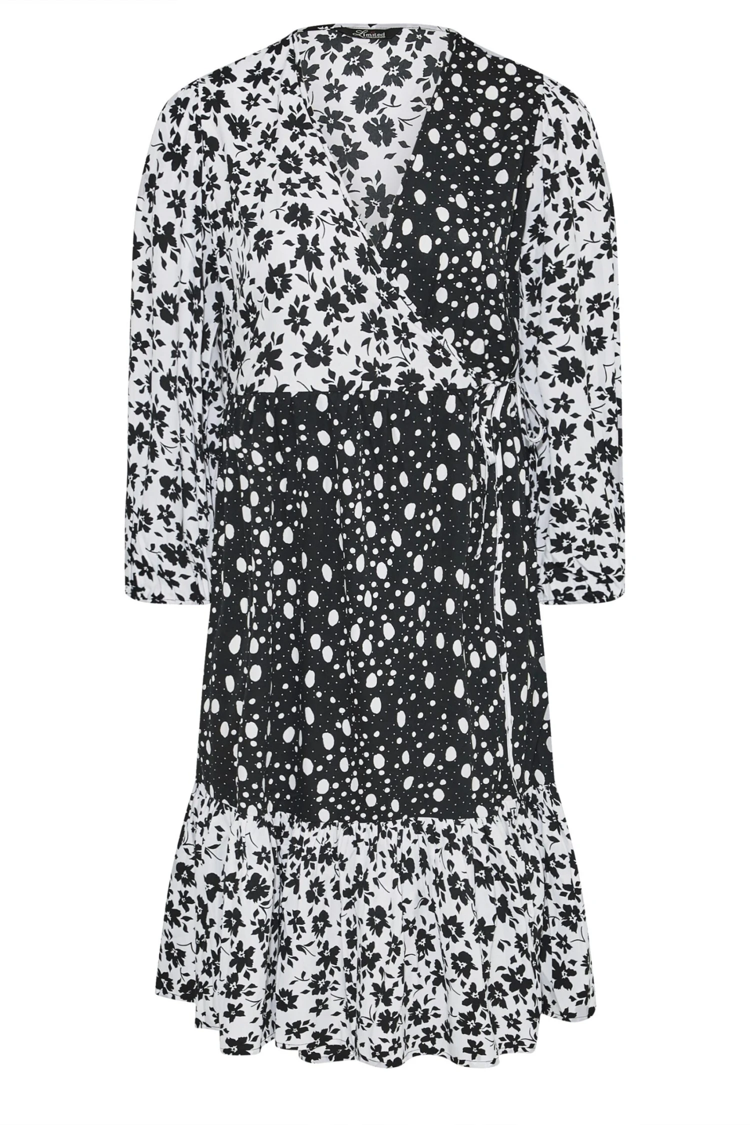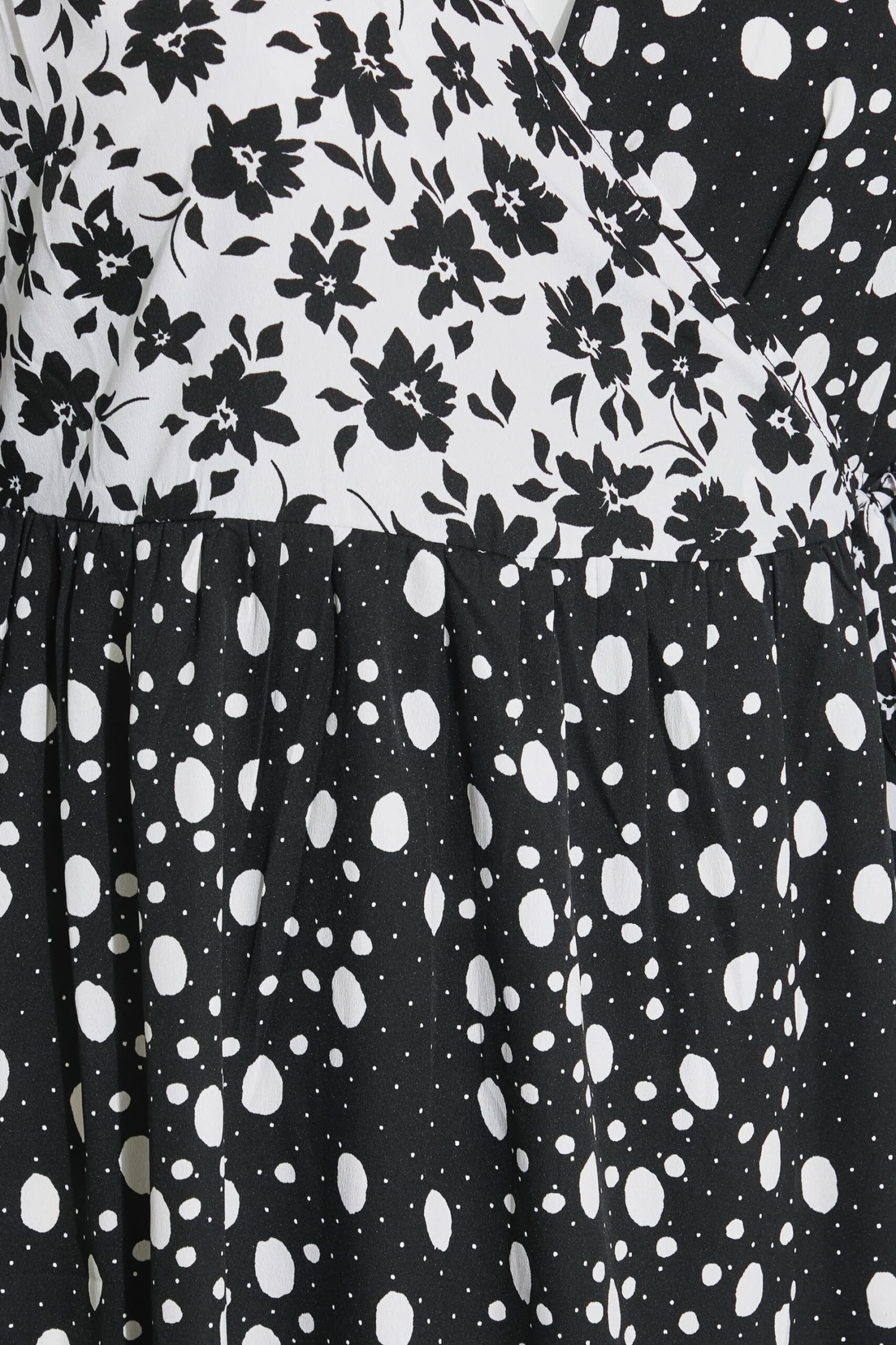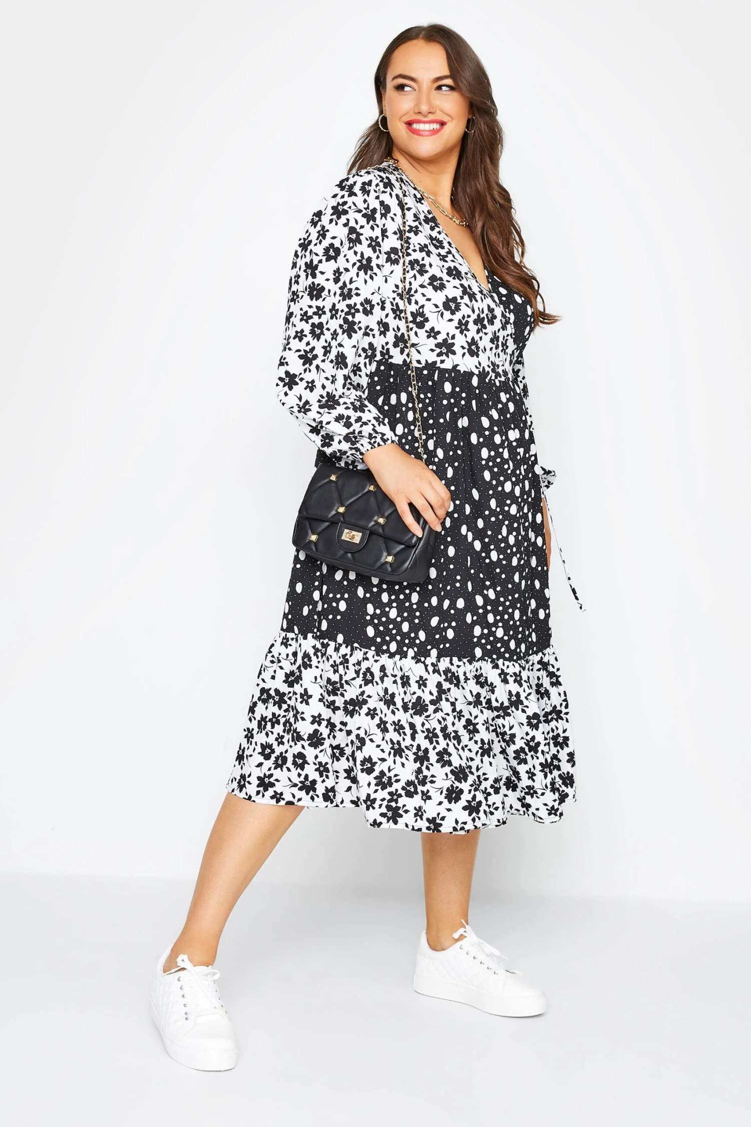 Craquez pour notre robe cache-coeur noire et blanche contrastée tâcheté et floral. Confortable et légère, vous allez adorer la porter cette saison.