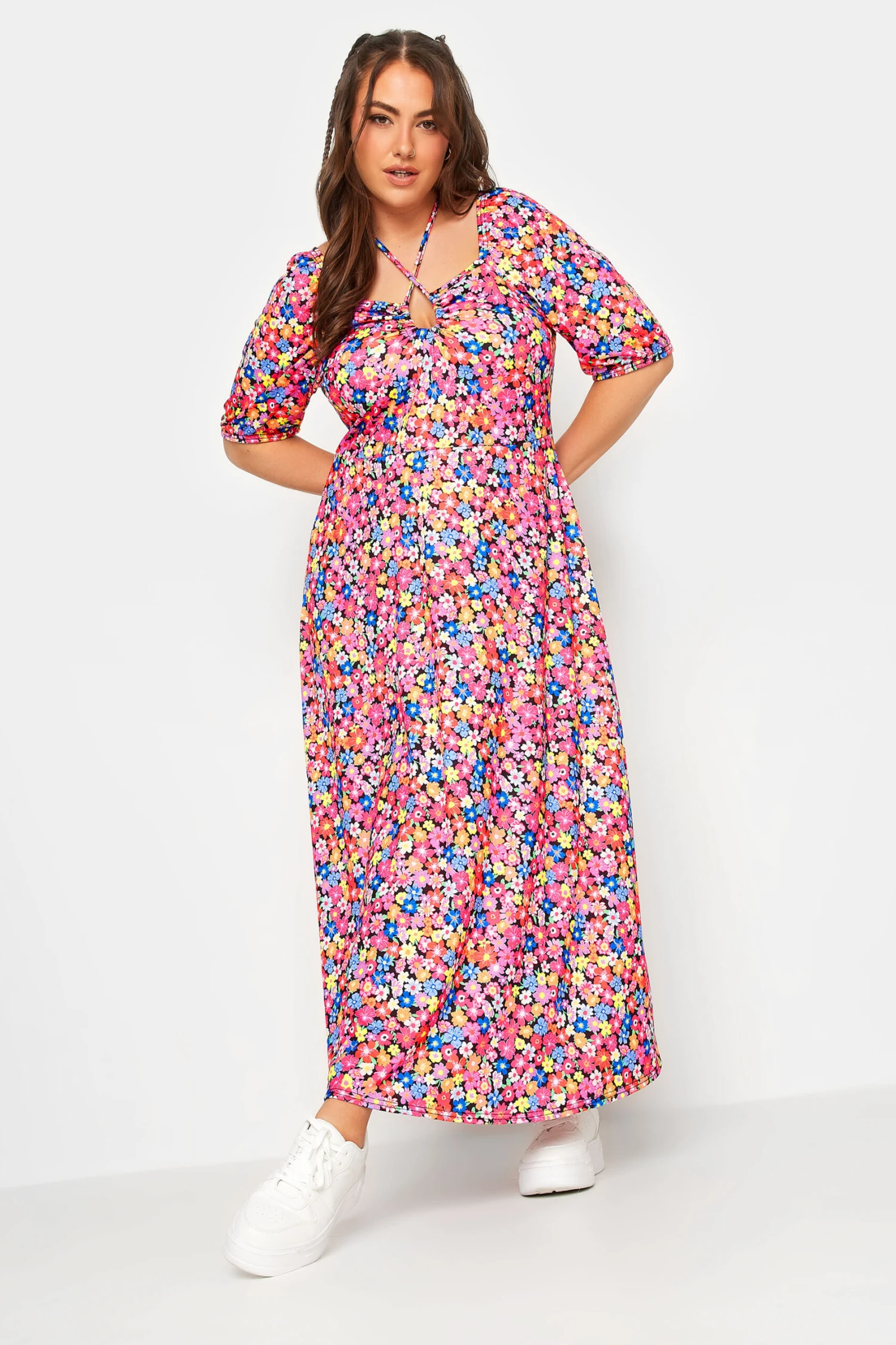 Ajoutez une touche de couleur Ă vos tenues de saison avec notre robe maxi floral manches courtes.