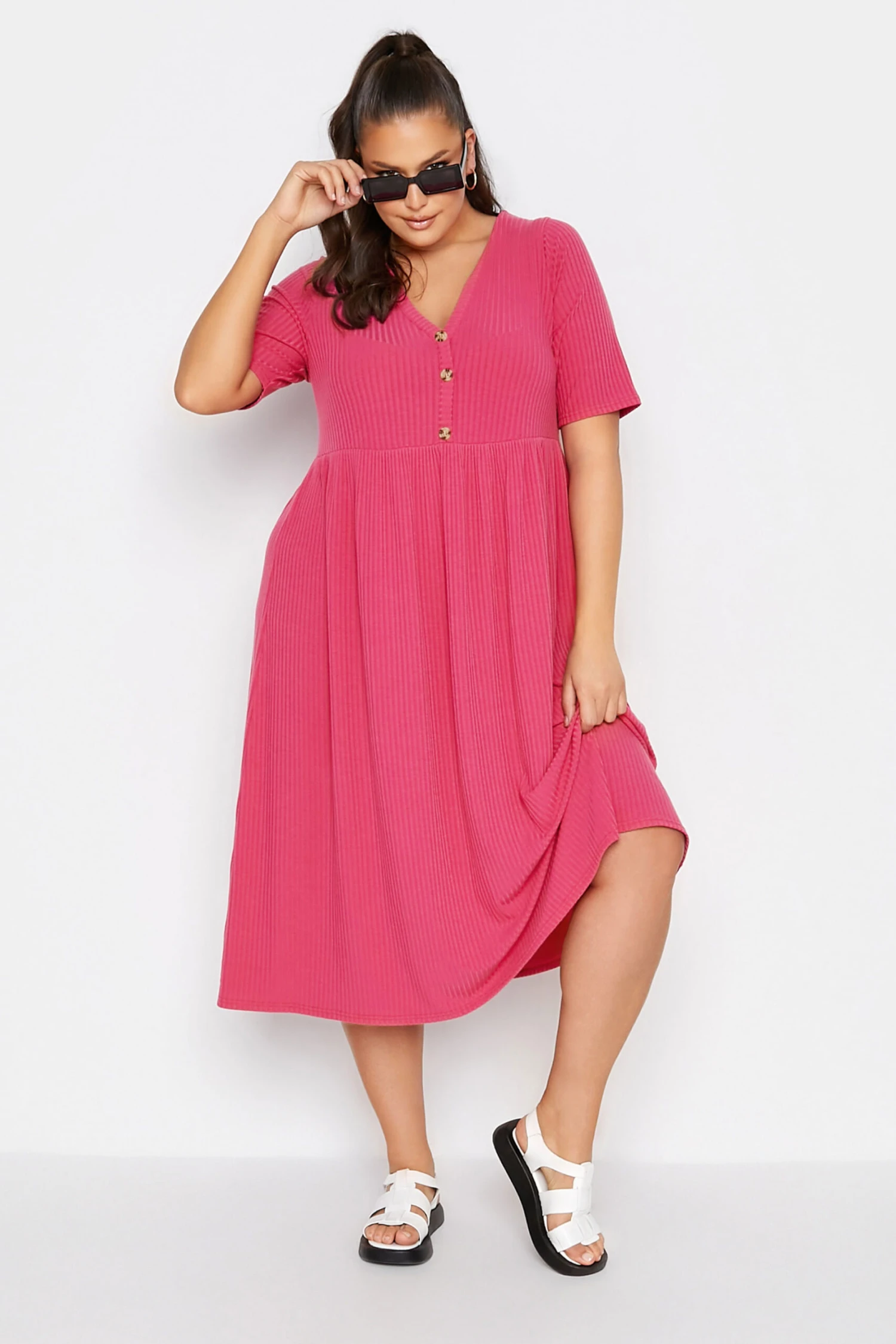 Complétez votre collection de pièces essentielles cette saison avec notre robe midi rose nervuré peplum Limited Collection. Confortable, pratique et tendance, vous allez l’adorer.