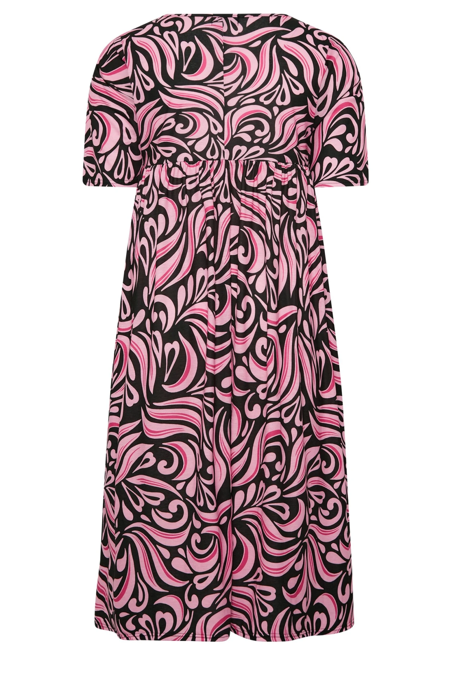 Craquez pour notre robe midi smocké noire et rose imprimé tourbillons. Vous allez l’adorer pour vos sorties de saison.