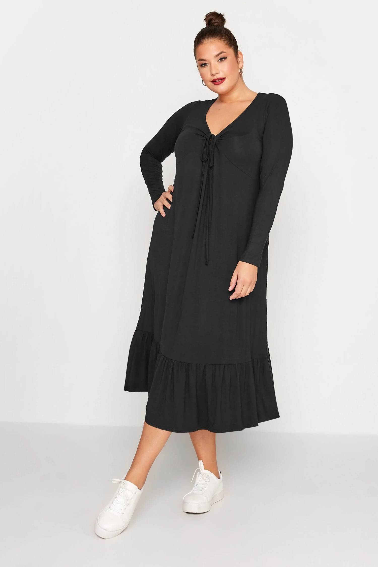 Craquez pour notre robe noire longueur midaxi volanté. Légère et confortable, vous allez adorer la porter cette saison.