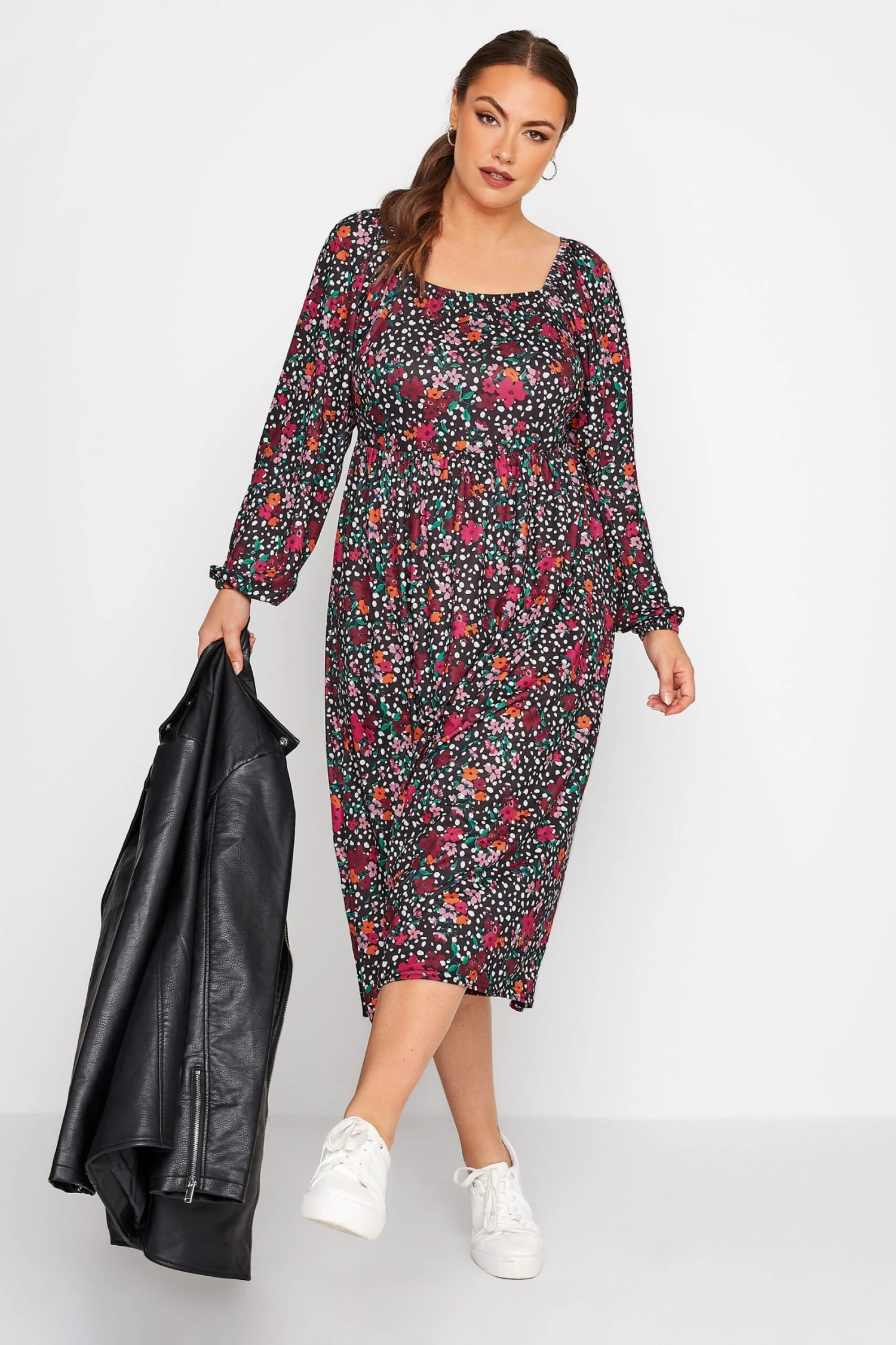 Faites le plein de nouveautés pour la nouvelle saison avec notre robe noire multi-floral rose manches longues. Féminine et classe, vous pourrez la porter pour plusieurs de vos occasions.