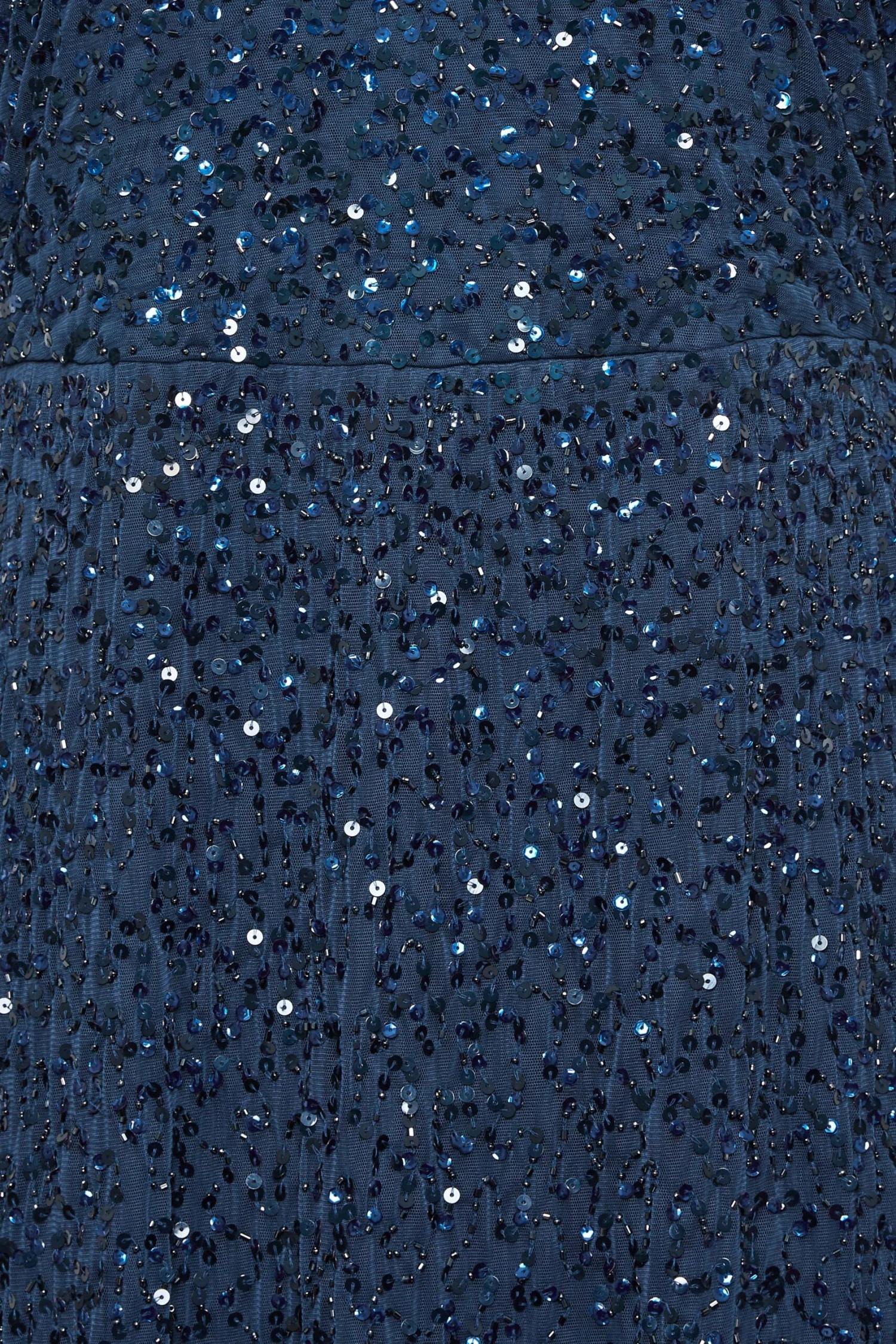 Resplendissez pour vos occasions spéciales avec notre robe bleue marine maxi empiècement sequins.