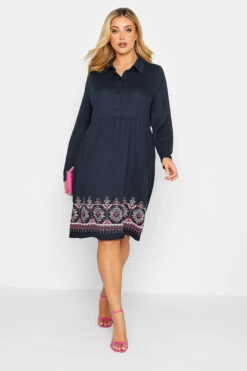 Craquez pour notre robe bleue marine midi manches longues ourlet aztèque. Tendance, féminine et cosy, vous allez l’adorer.
