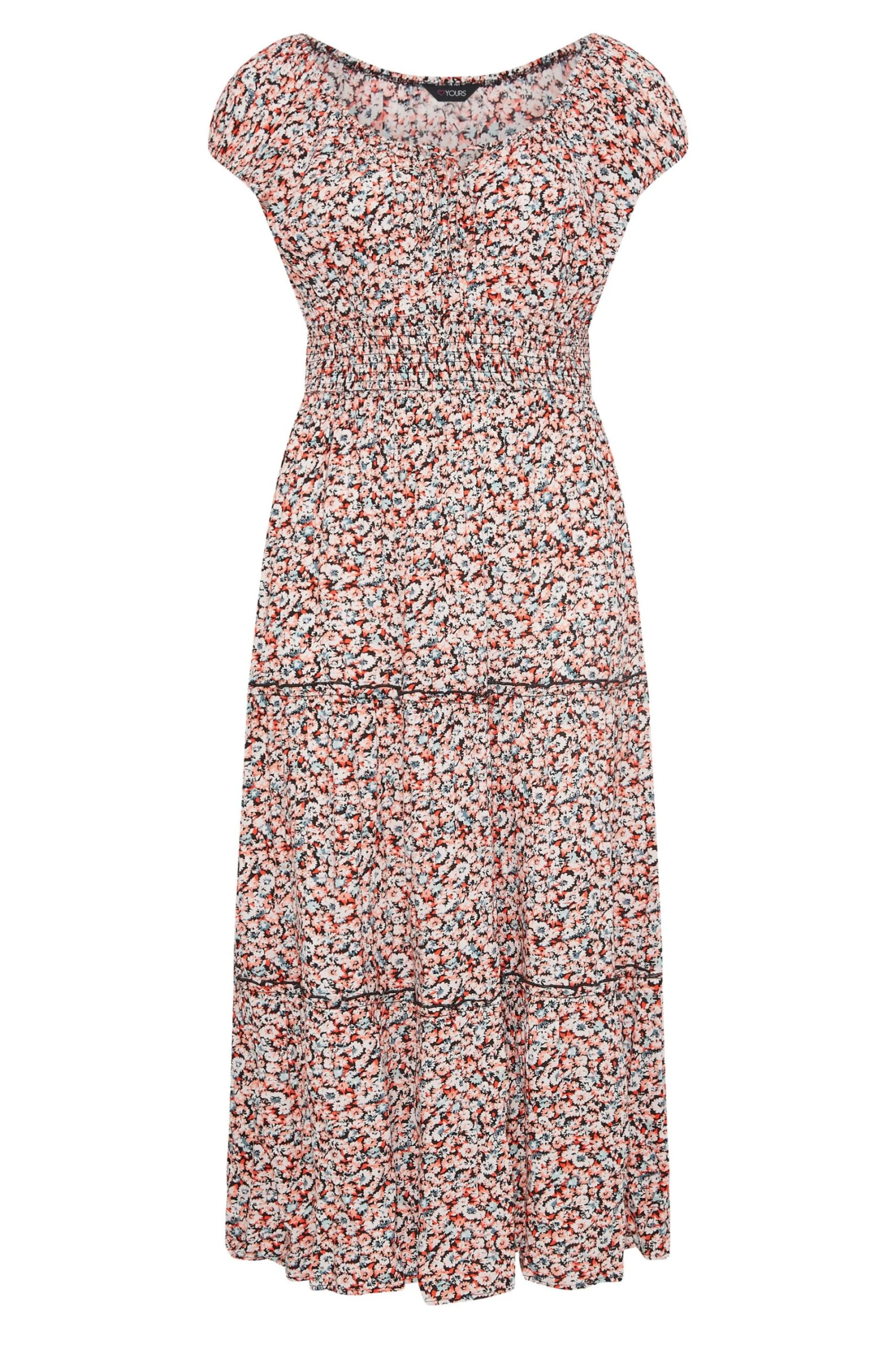 Craquez pour notre robe maxi blanche et orange petites fleurs coupe bardot. Légère, féminine et colorée, vous allez l’adorer pour vos sorties d’été.