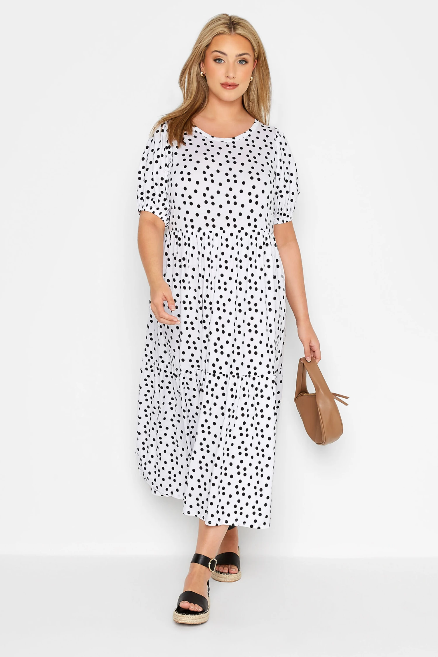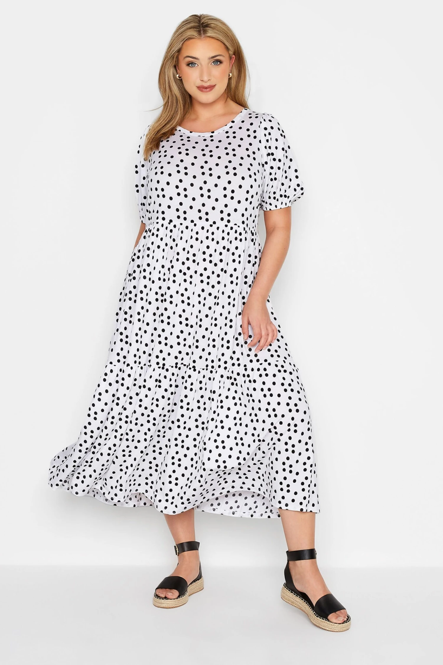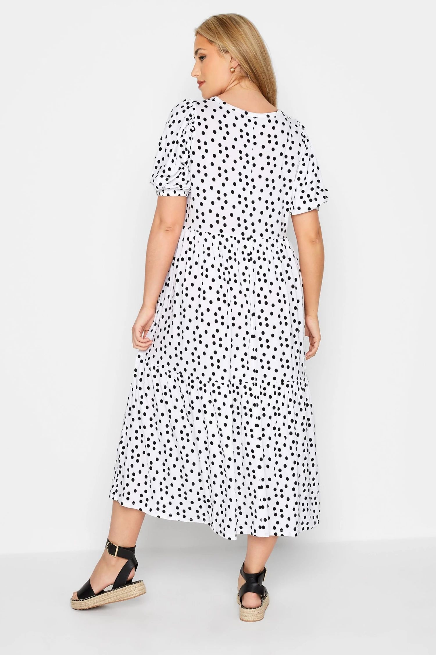 Craquez pour notre robe midaxi blanche pois noirs design smocké. Féminine et confortable, vous pourrez la porter aisément cet été.