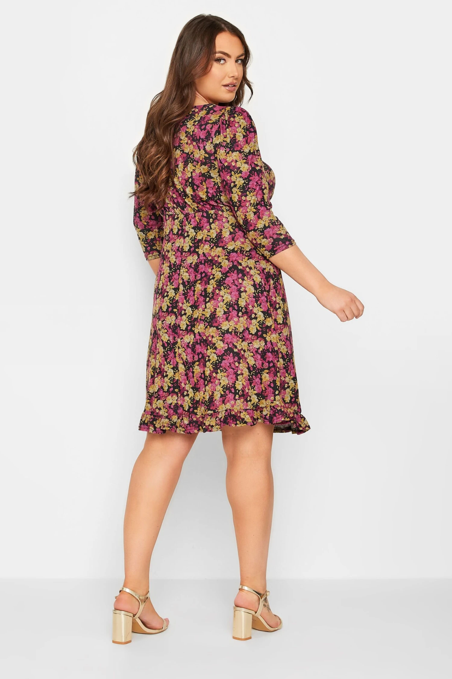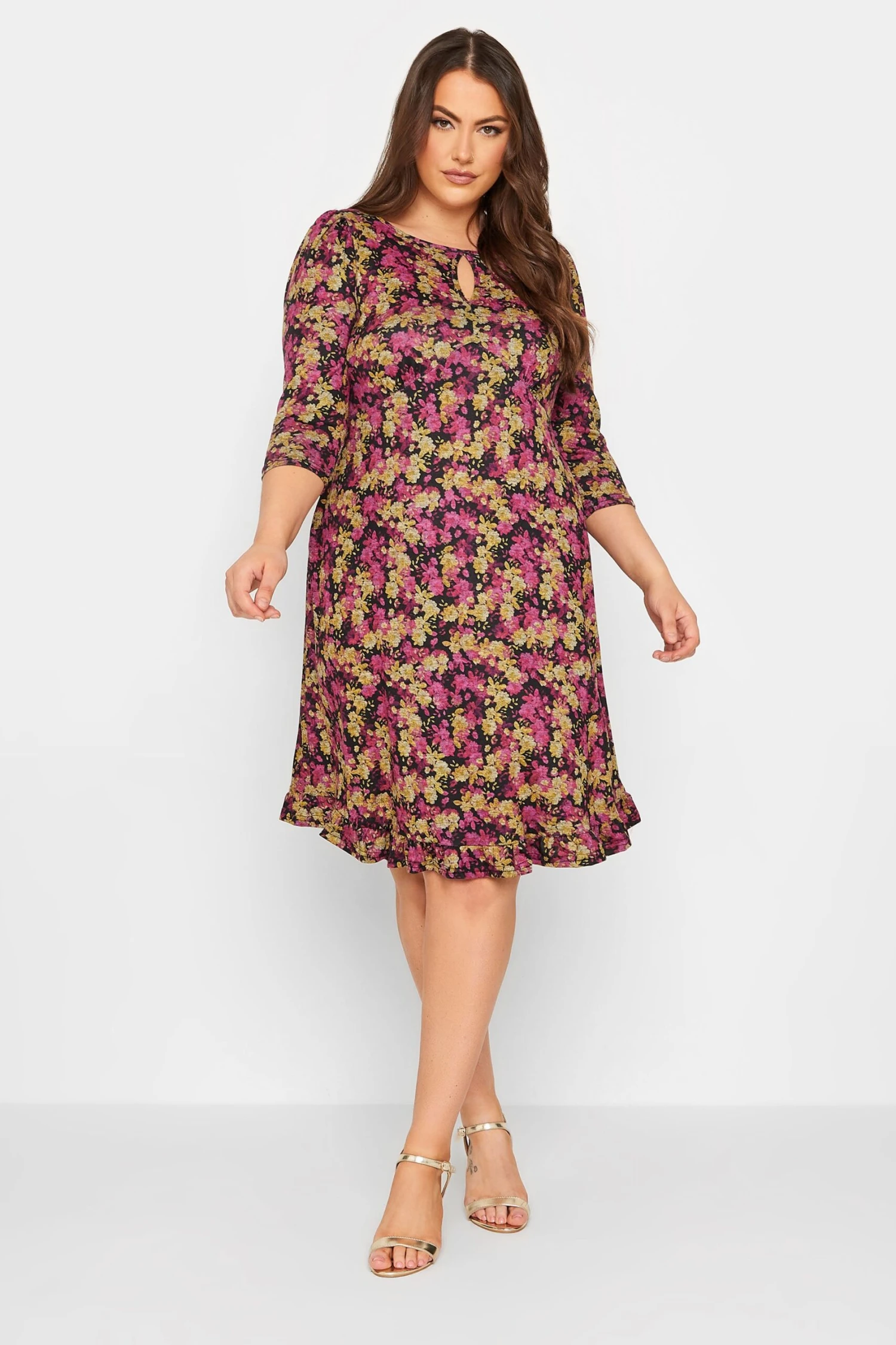 Craquez pour notre robe midi rose et jaune floral volanté. Tendance et féminine vous allez l’adorer.