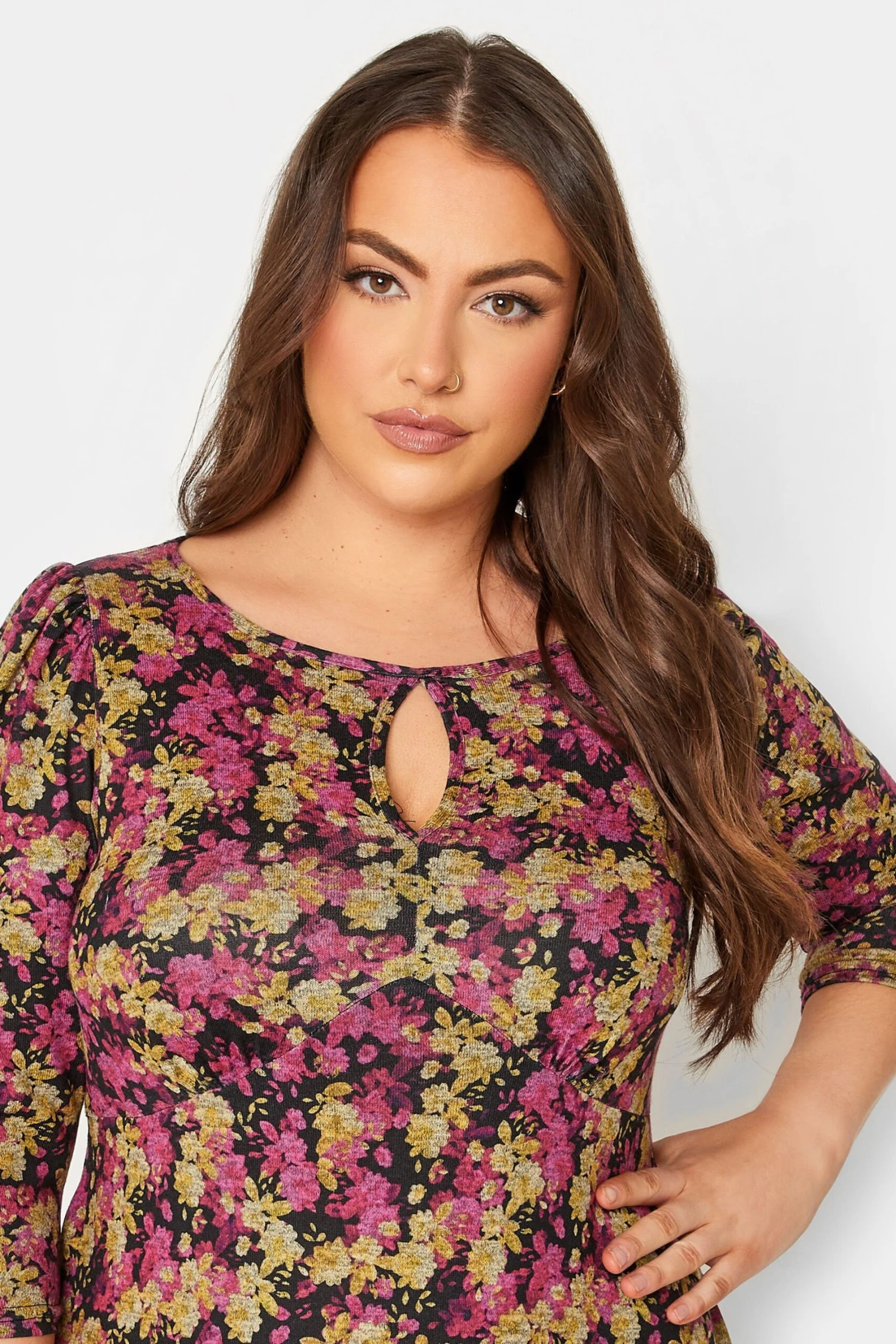 - Le mannequin mesure 5’10.5″/178cm et porte du UK 16/EU 44