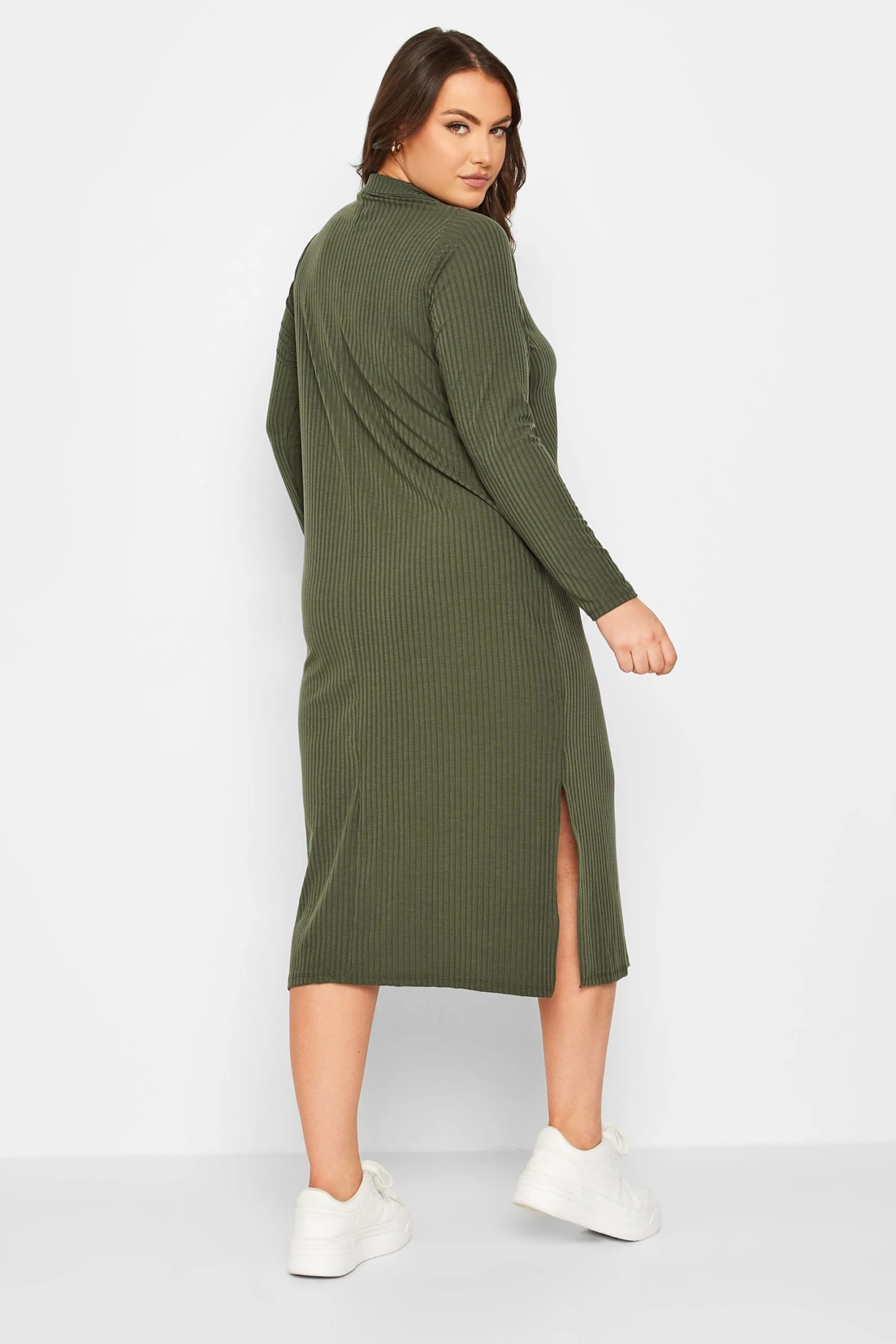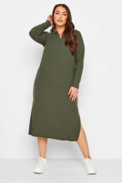Complétez votre collection de robes de saison avec notre robe midi verte kaki nervurée à fente. Tendance et cosy, vous allez l’adorer.