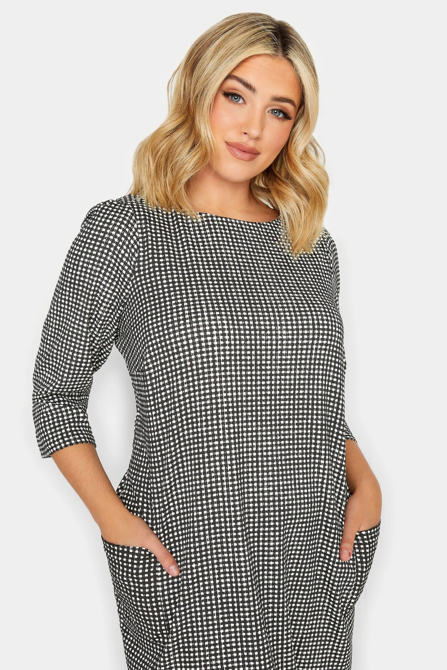 Complétez votre garde-robe de saison avec notre robe noire et blanche coupe droite à carreaux. Tendance et classe, vous allez l’adorer.