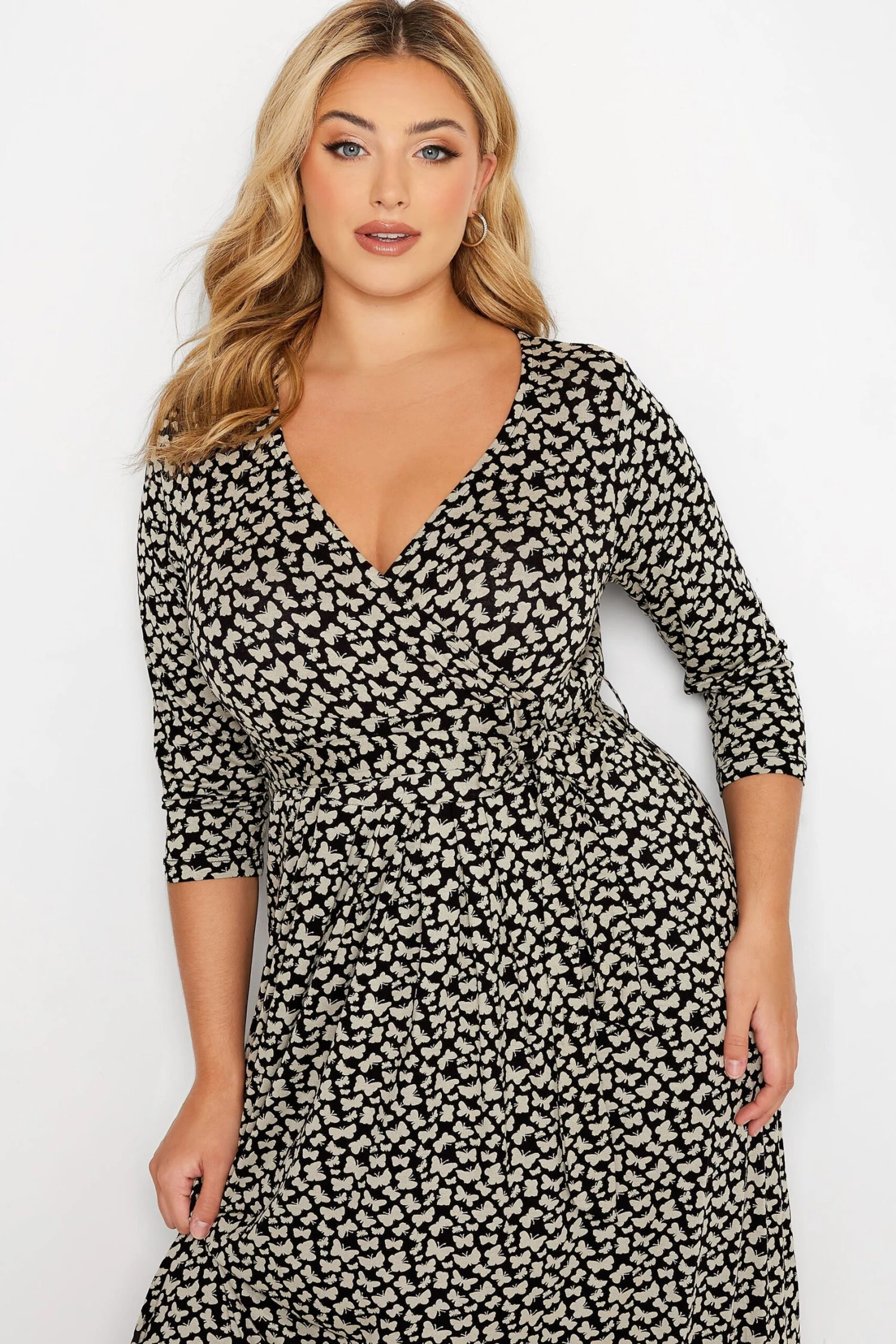 - Le mannequin mesure 5’8″/175 cm et porte du UK 16/EU 44