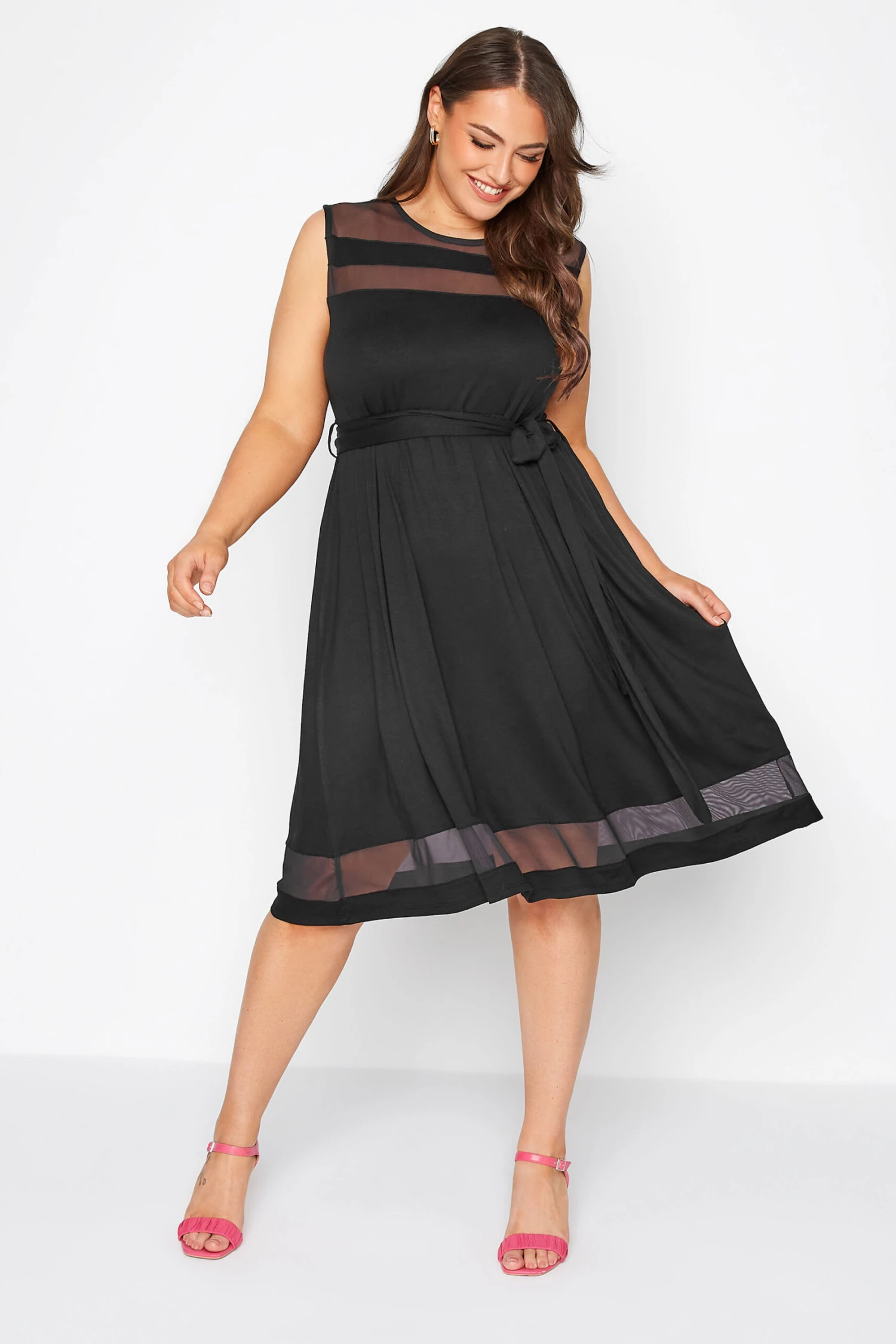 Resplendissez lors de vos sorties de saison avec notre robe noire empiècement filet patineuse. Colorée, raffinée et féminine, vous allez l’adorer!