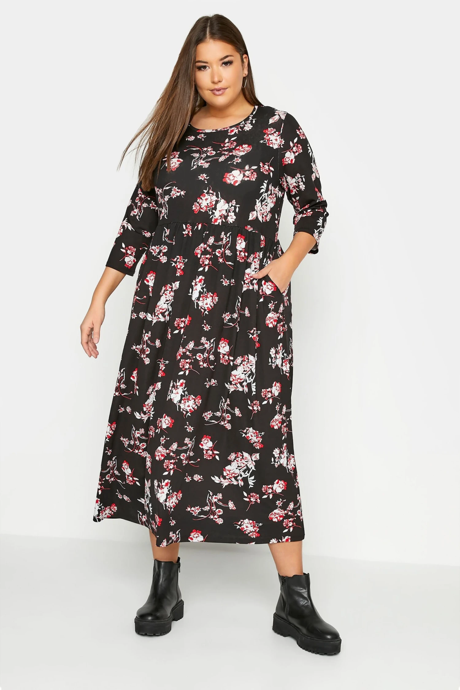 Vous avez une sortie ce weekend? Optez pour notre robe cosy noire floral en jersey à poches. Légère, confortable et tendance, vous allez adorer la porter en cette saison de Printemps. Complétez le look avec une paire de bottines pour un look 100% weekend.