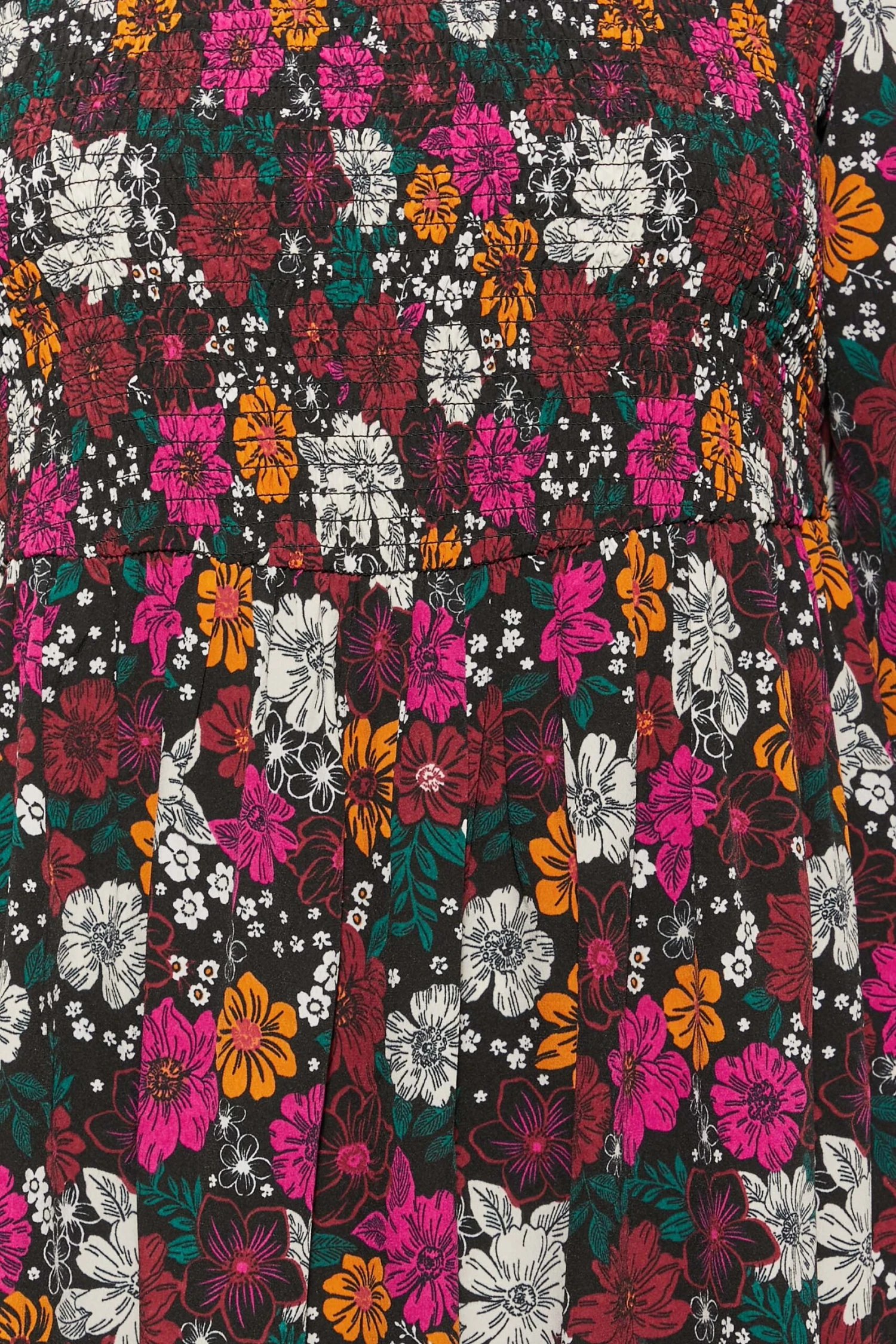 Craquez pour notre robe noire floral rétro rose et vert manches en ballons. Colorée et féminine, vous allez adorer la porter pour vos différentes sorties de saison.