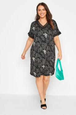 Craquez pour notre robe noire imprimé feuilles bordure en crochet. Confortable et tendance, vous allez l’adorer cette saison. Découvrez-là en différents styles.