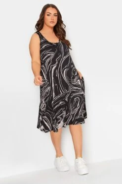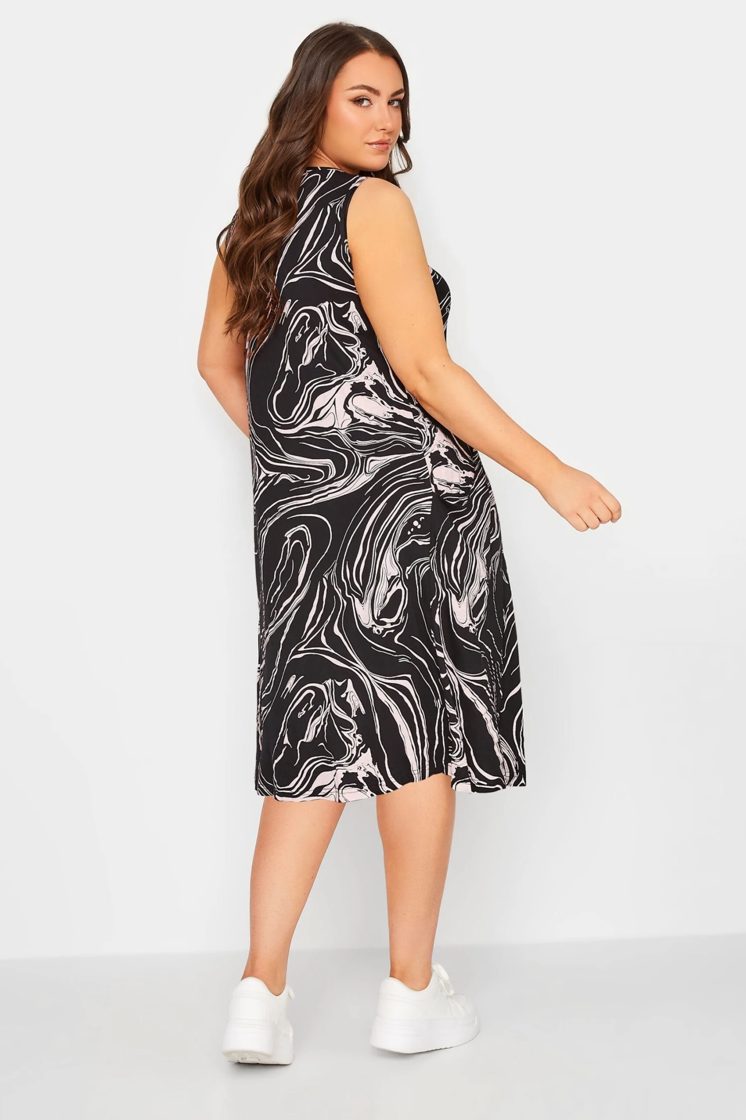 Complétez votre collection de robes cette saison avec notre robe noire marbrée sans manches midi en jersey à poches. Tendance et confortable, vous ne pourrez plus vous en séparer.