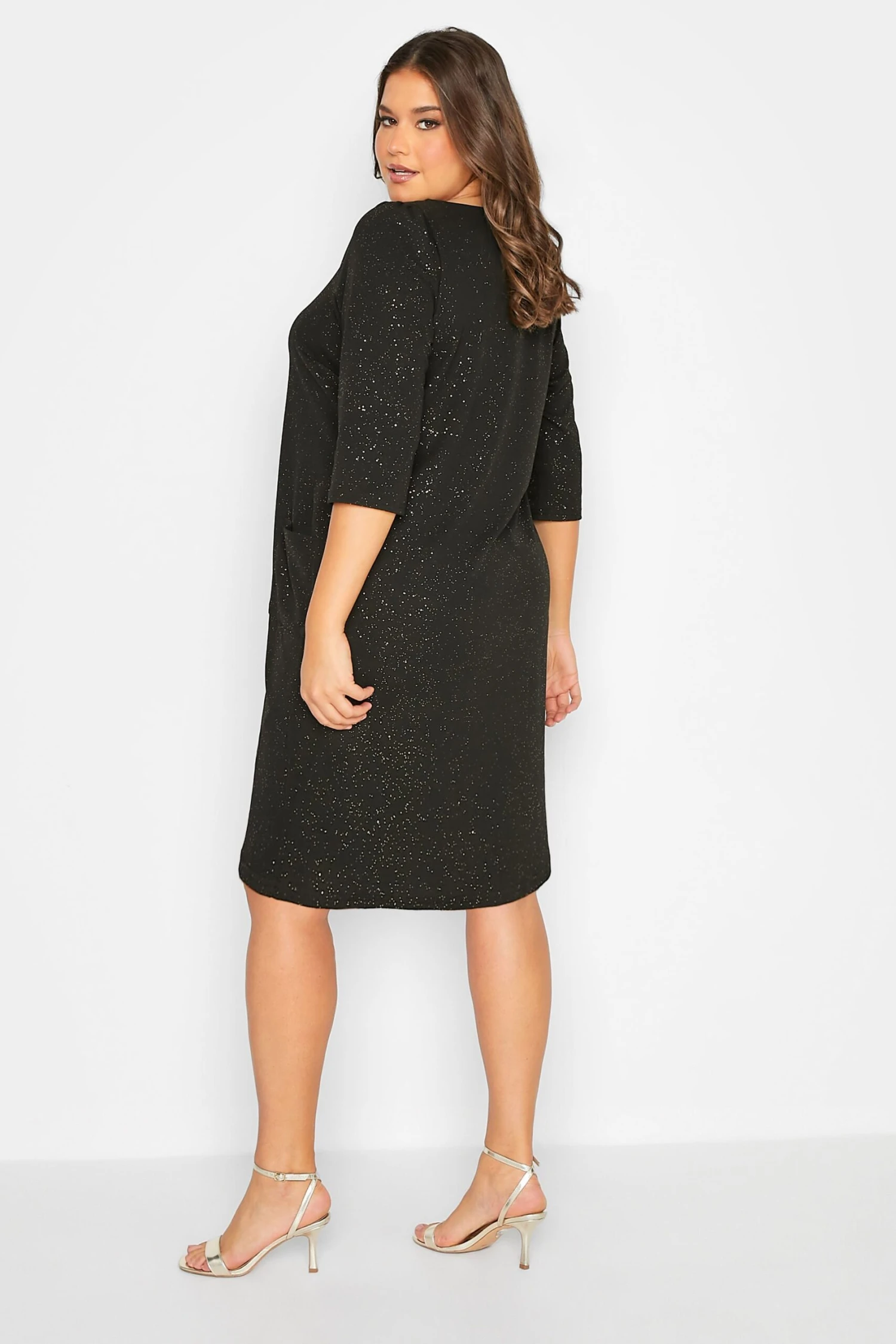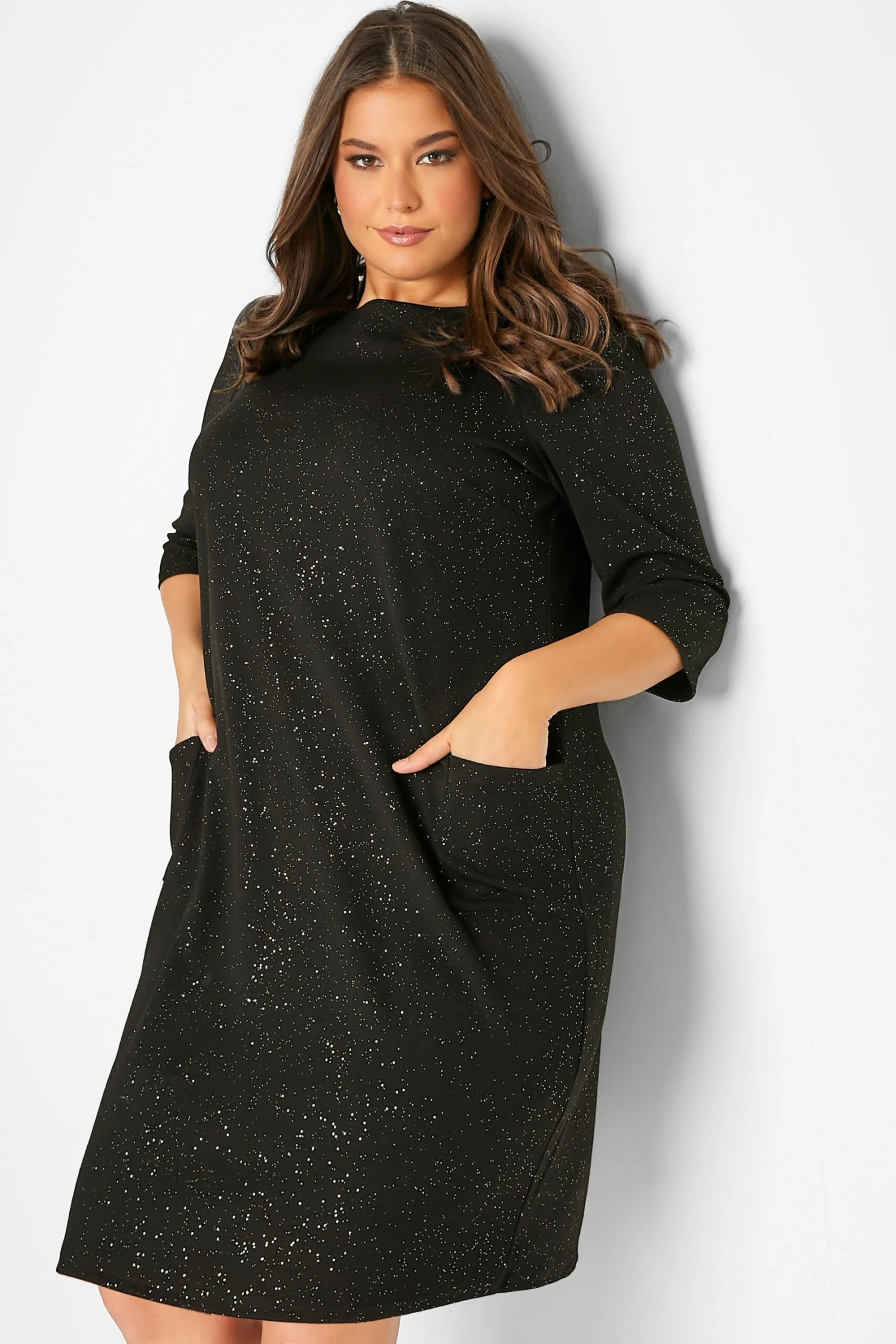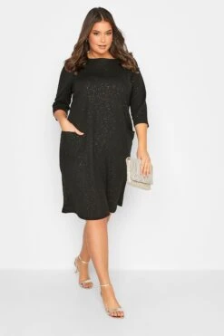 Craquez pour notre robe noire paillettée drâpée à poches. Classe et féminine, vous pourrez la porter en plusieurs styles.