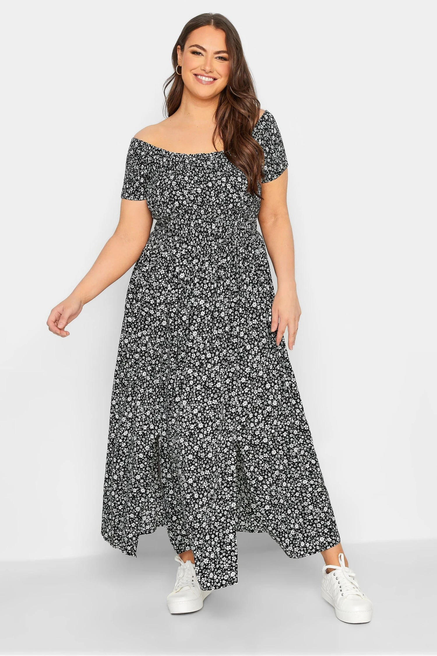 Craquez pour notre robe noire petites fleurs maxi design bardot. Tendance et fĂ©minine, vous allez l’adorer.