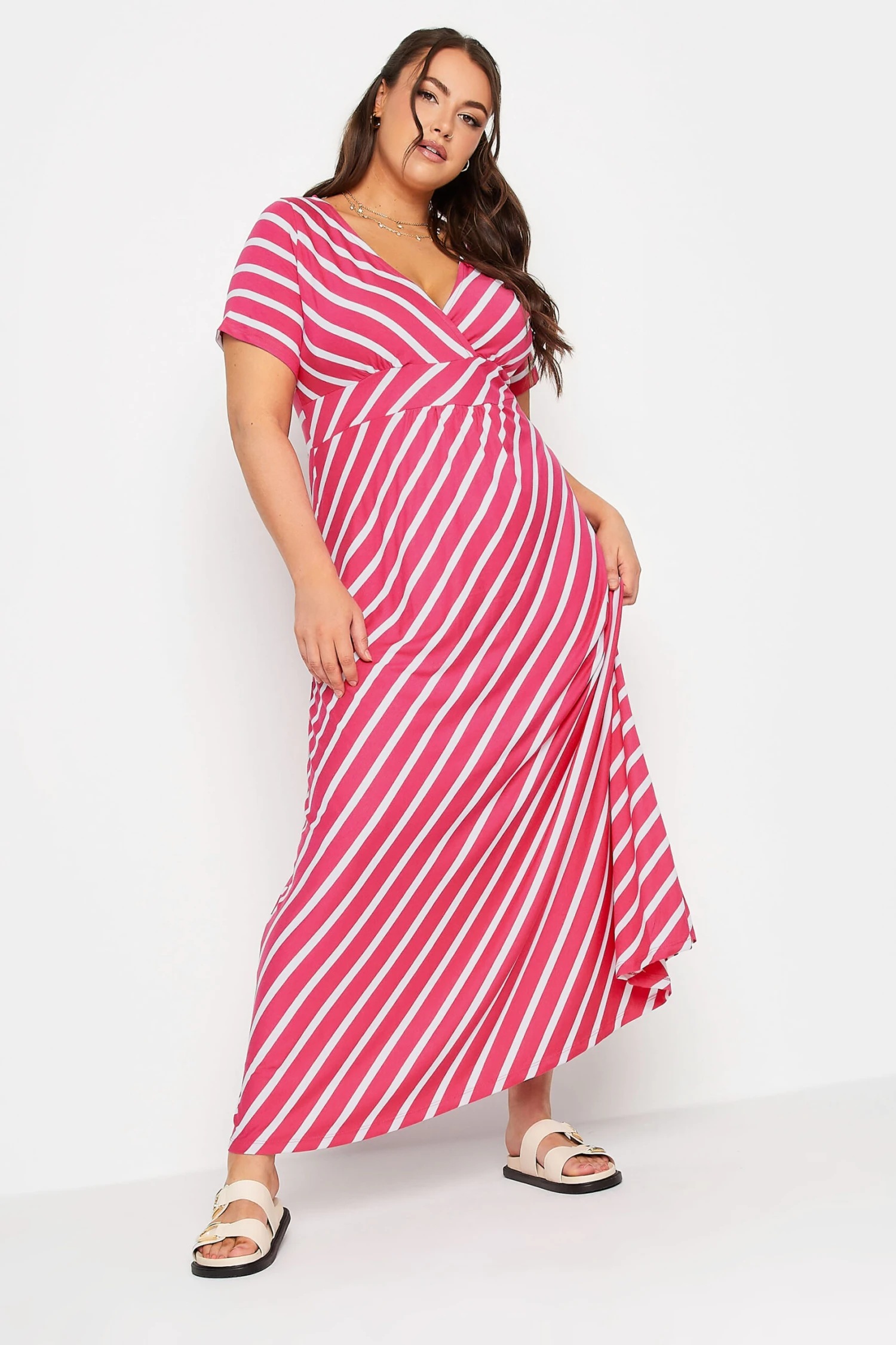 Craquez pour notre robe rose et blanche à rayures cache-coeur. Féminine, confortable et tendance, vous allez l’adorer cette saison.