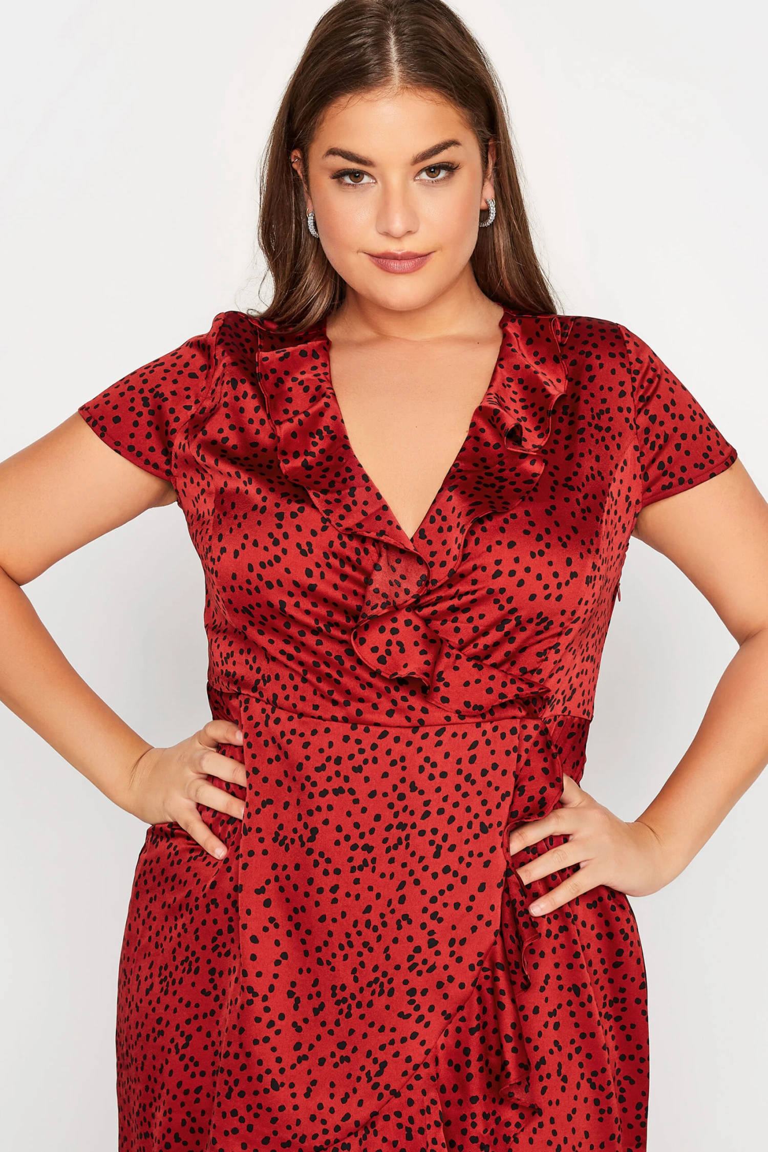 Craquez pour notre robe rouge satinée imprimé dalmatien volanté. Féminine, raffinée et tendance, vous allez l’adorer.