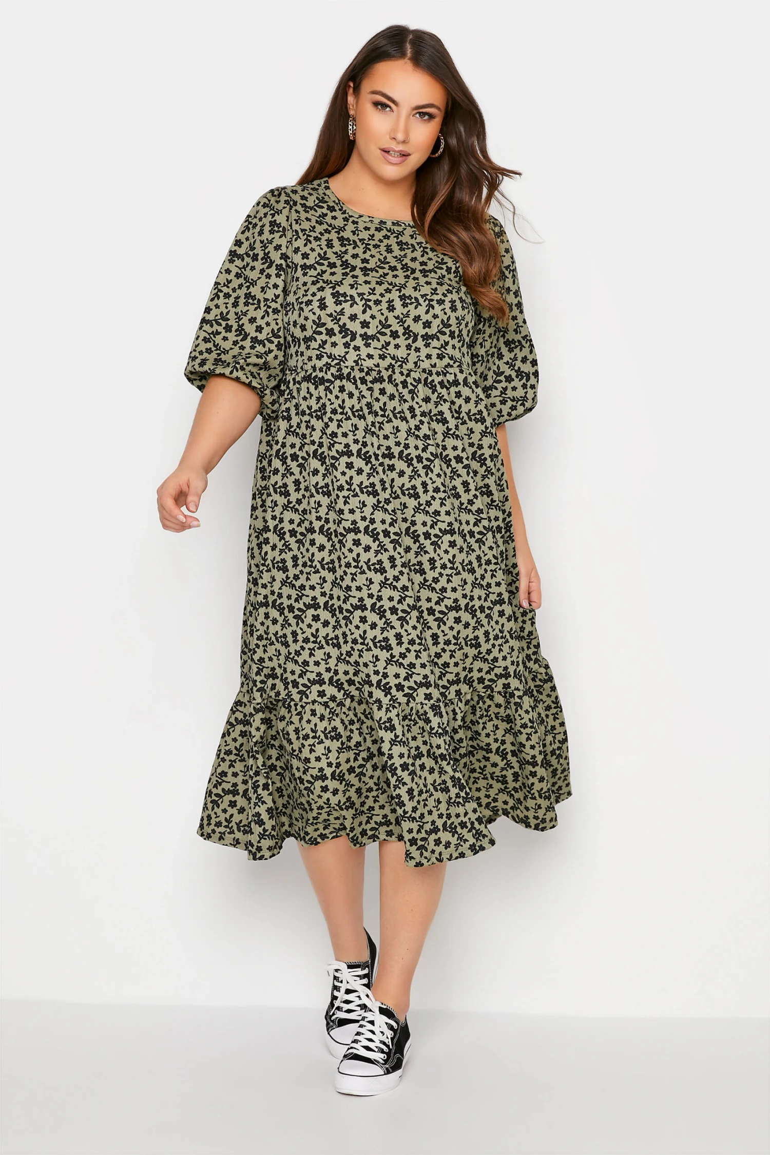 Craquez pour notre robe verte kaki floral volantée. Légère et tendance, vous allez adorer la porter cette saison.