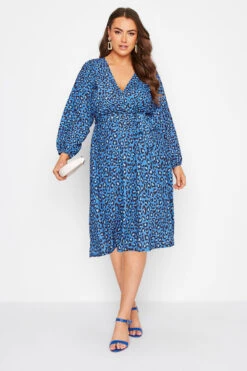 Craquez pour notre robe bleue léopard en cache-coeur. Légère et féminine, vous allez adorer la porter cette saison.