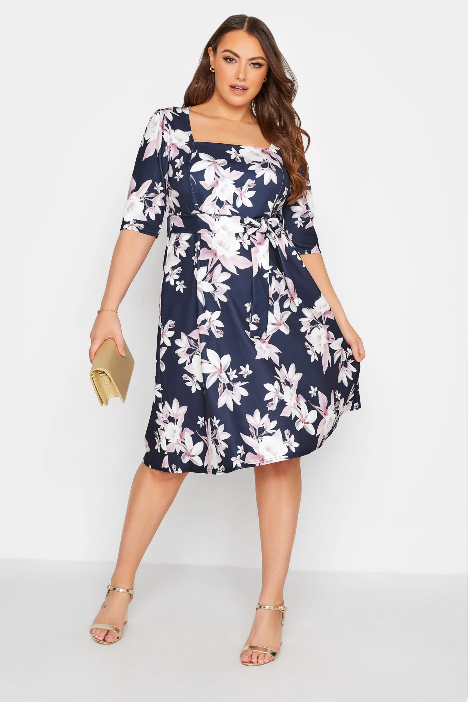 Craquez pour notre robe bleue marine floral manches courtes Yours London. Confortable et tendance, vous allez l’adorer.