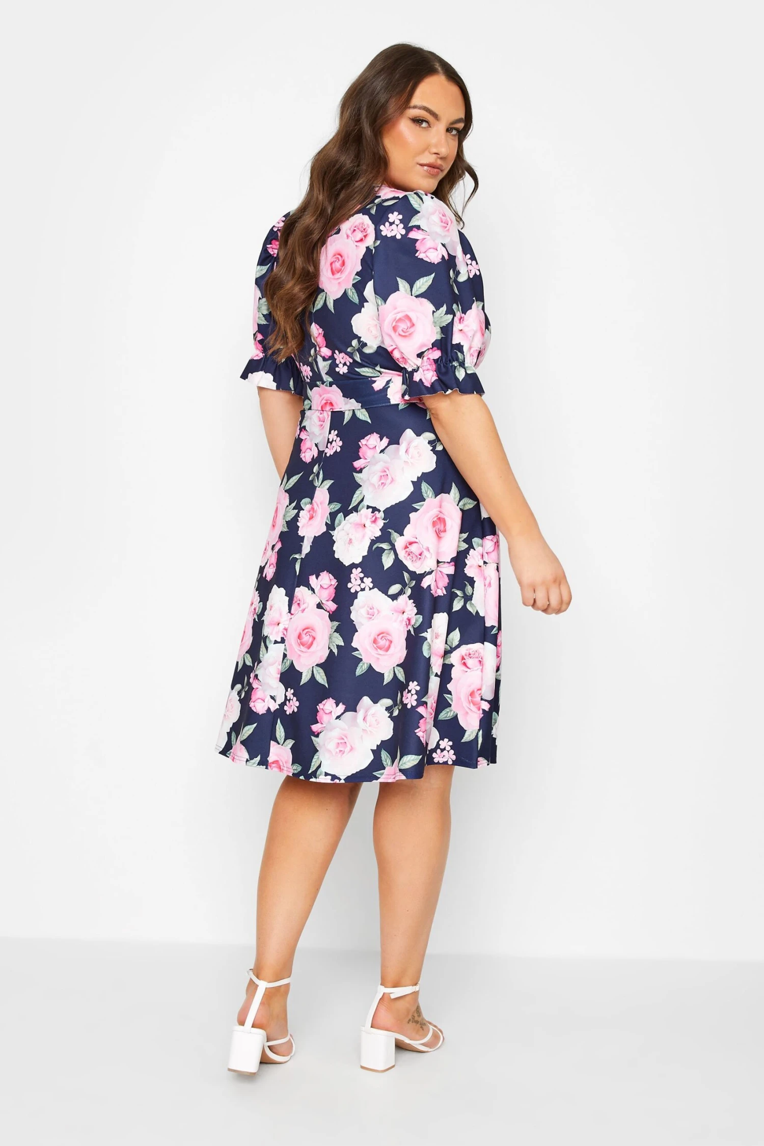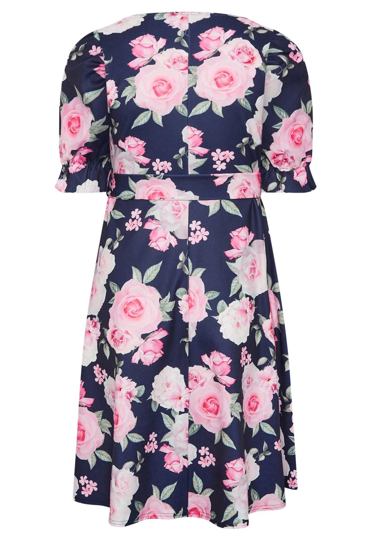Complétez votre collection de robes de saison avec notre robe bleue marine floral rose manches bouffantes. Raffinée et classe, vous pourrez la porter pour plusieurs de vos occasions.