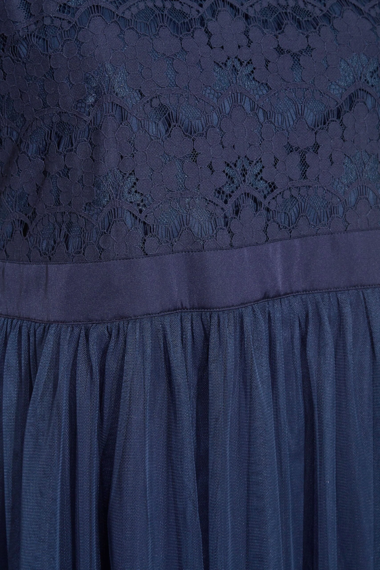 Soyez resplendissante en tant que demoiselle d’honneur ou en tant qu’invitée de mariage avec notre robe bleue marine maxi dentelle Yours London. Élégante, légère et raffinée, vous allez l’adorer!