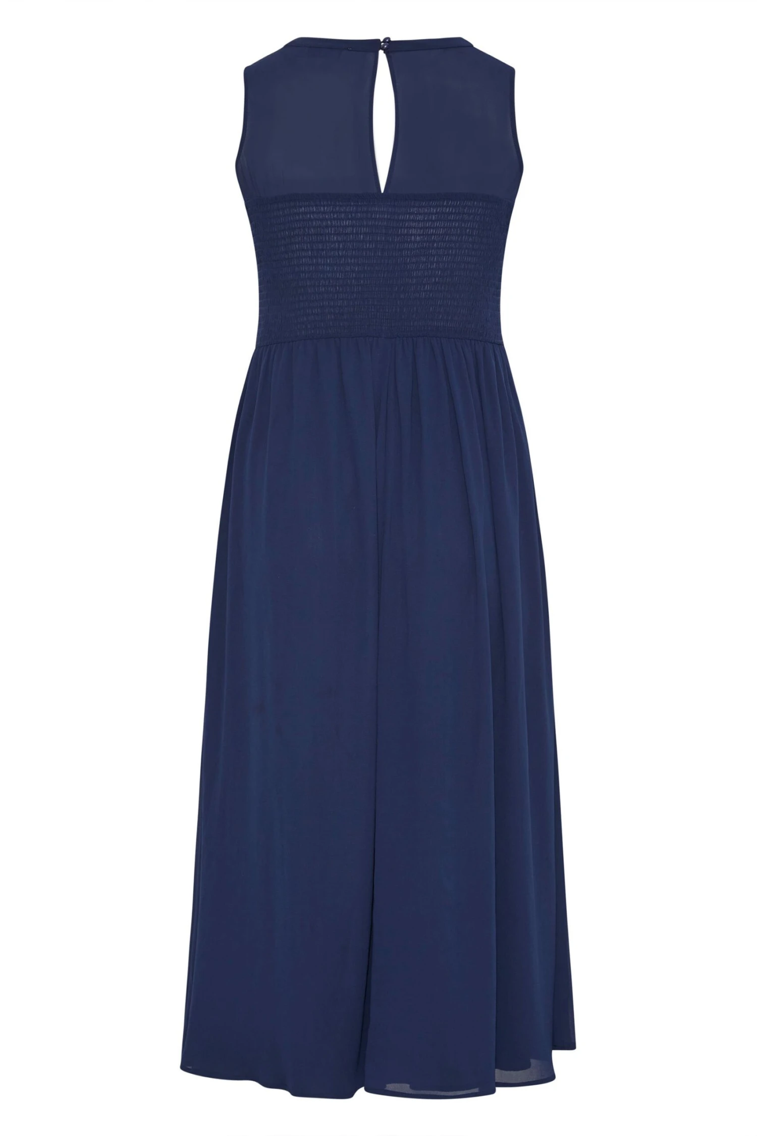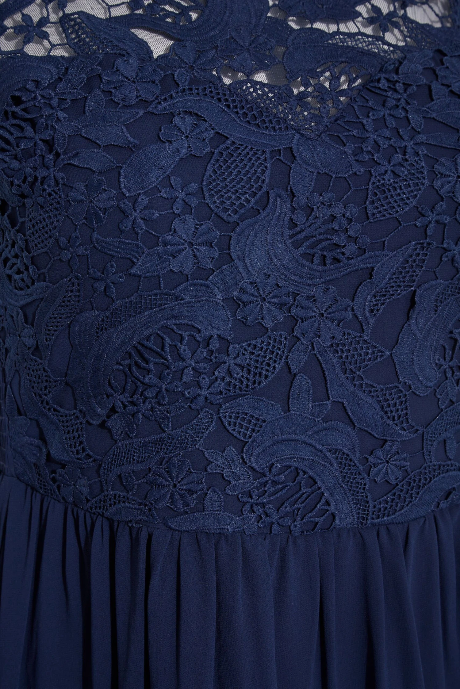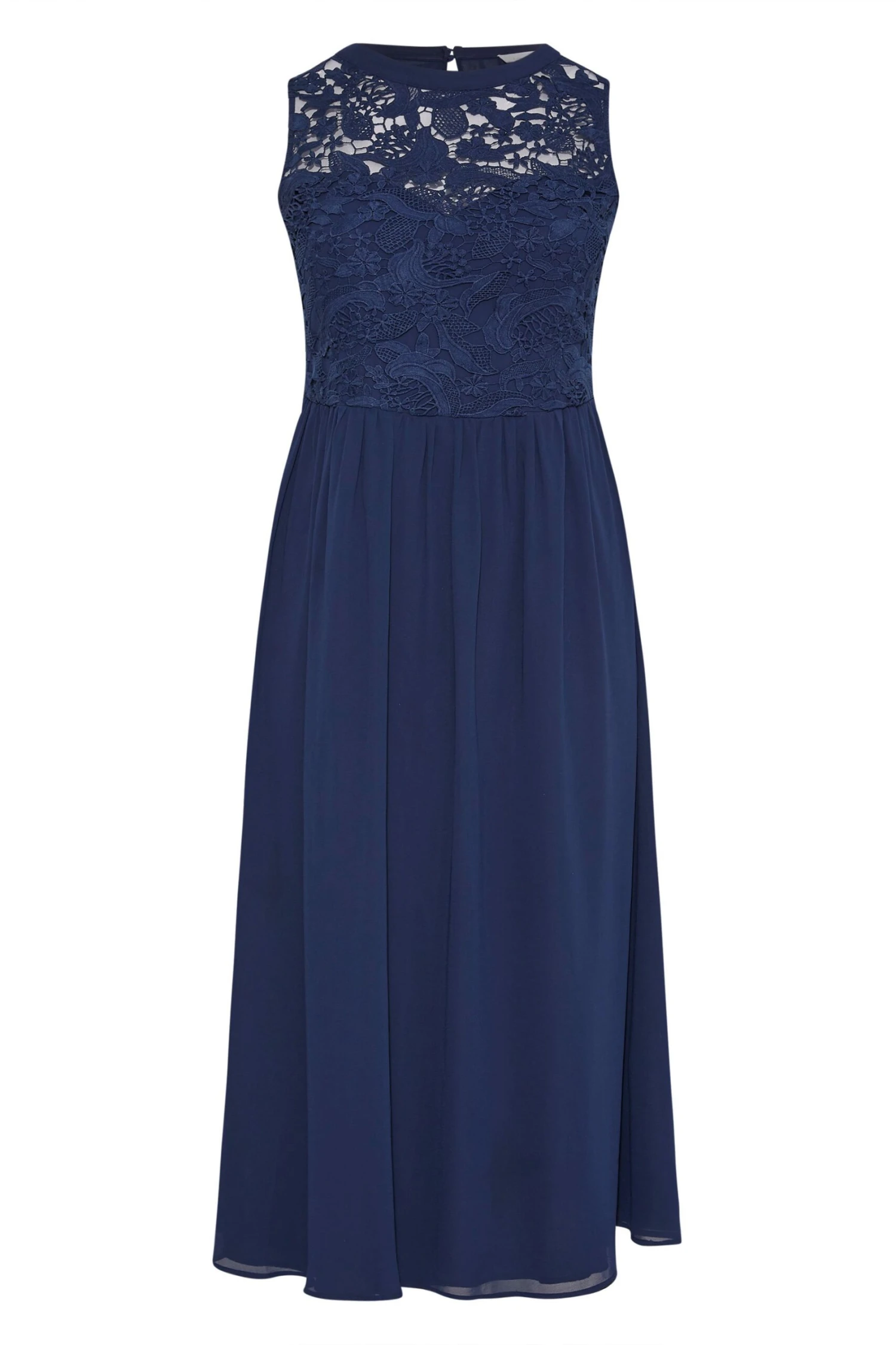 Vous ĂȘtes demoiselle d’honneur? InvitĂ©e de mariage ou Ă un autre Ă©vĂ©nement hĂąbillĂ©? Optez pour notre ravissante robe bleue marine en mousseline Yours London! Vous allez l’adorer pour sa dentelle floral Ă l’avant, son design plissĂ© et extensible au dos ainsi que sa jupe Ă©lĂ©gante en mousseline!