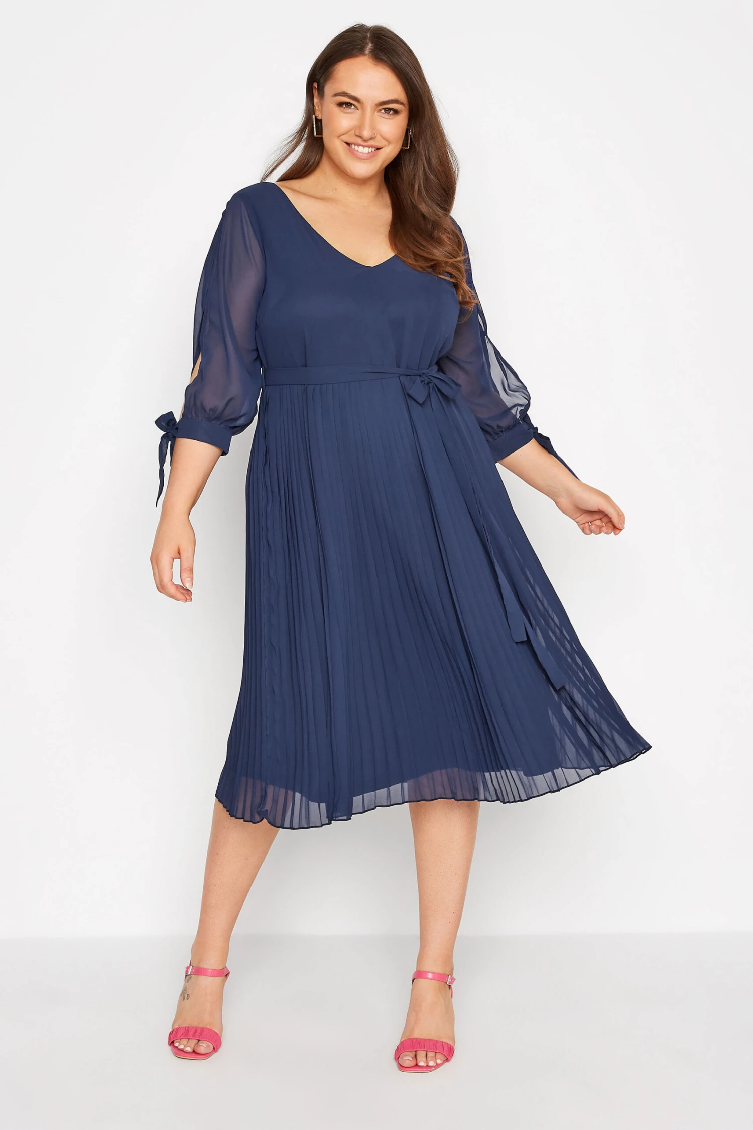 Craquez pour notre robe midi bleue marine plissée volantée. Légère, tendance et confortable, vous pourrez la porter lors de vos sorties classes. Découvrez-là également en vert eau pour plus d’options de styles.