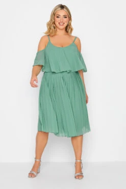 Ajoutez une touche classe à vos tenues de saison avec notre robe midi verte eau plissée volantée. Féminine et légère, vous allez l’adorer pour sa coupe flatteuse ainsi que pour sa couleur douce.