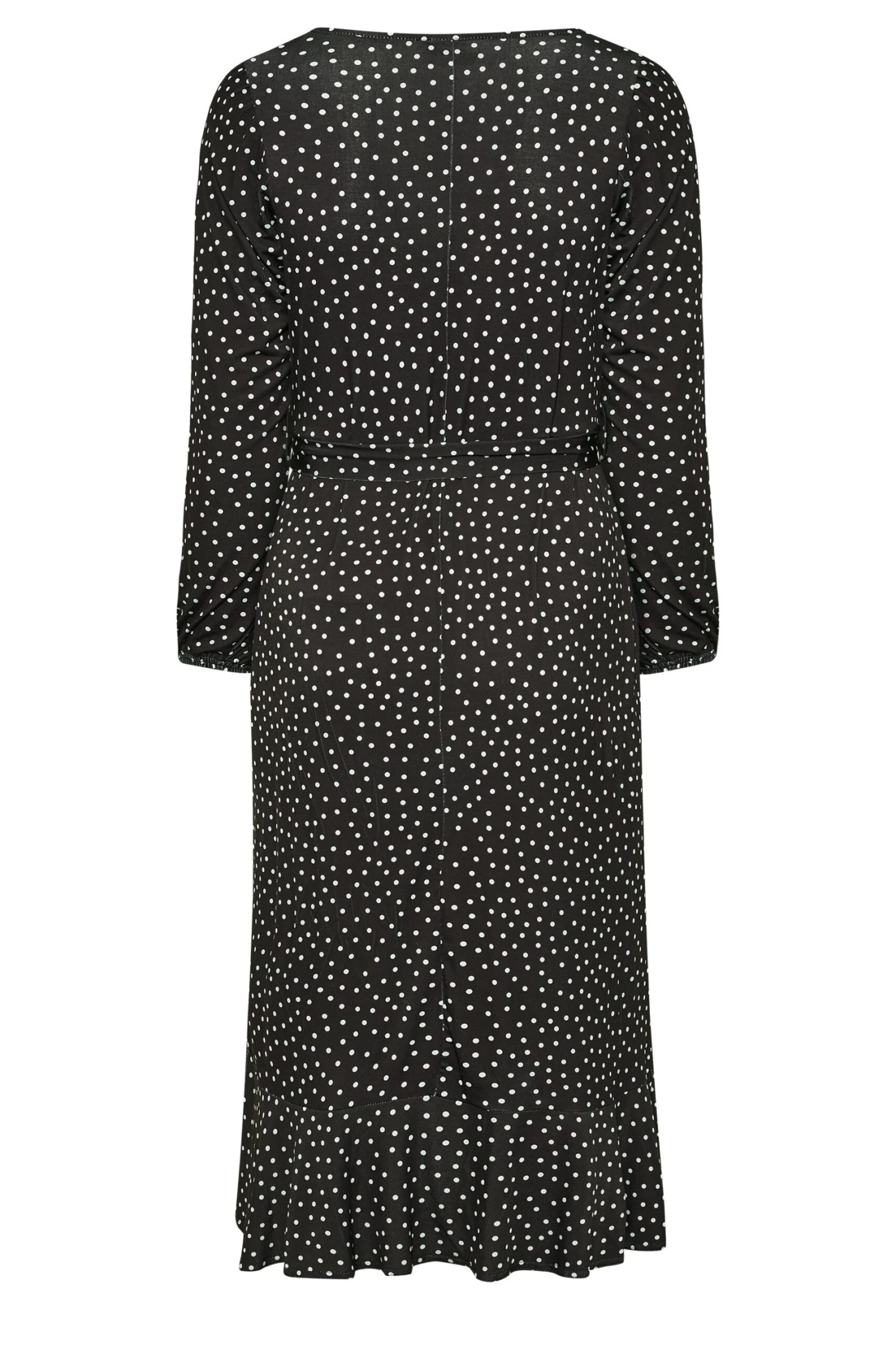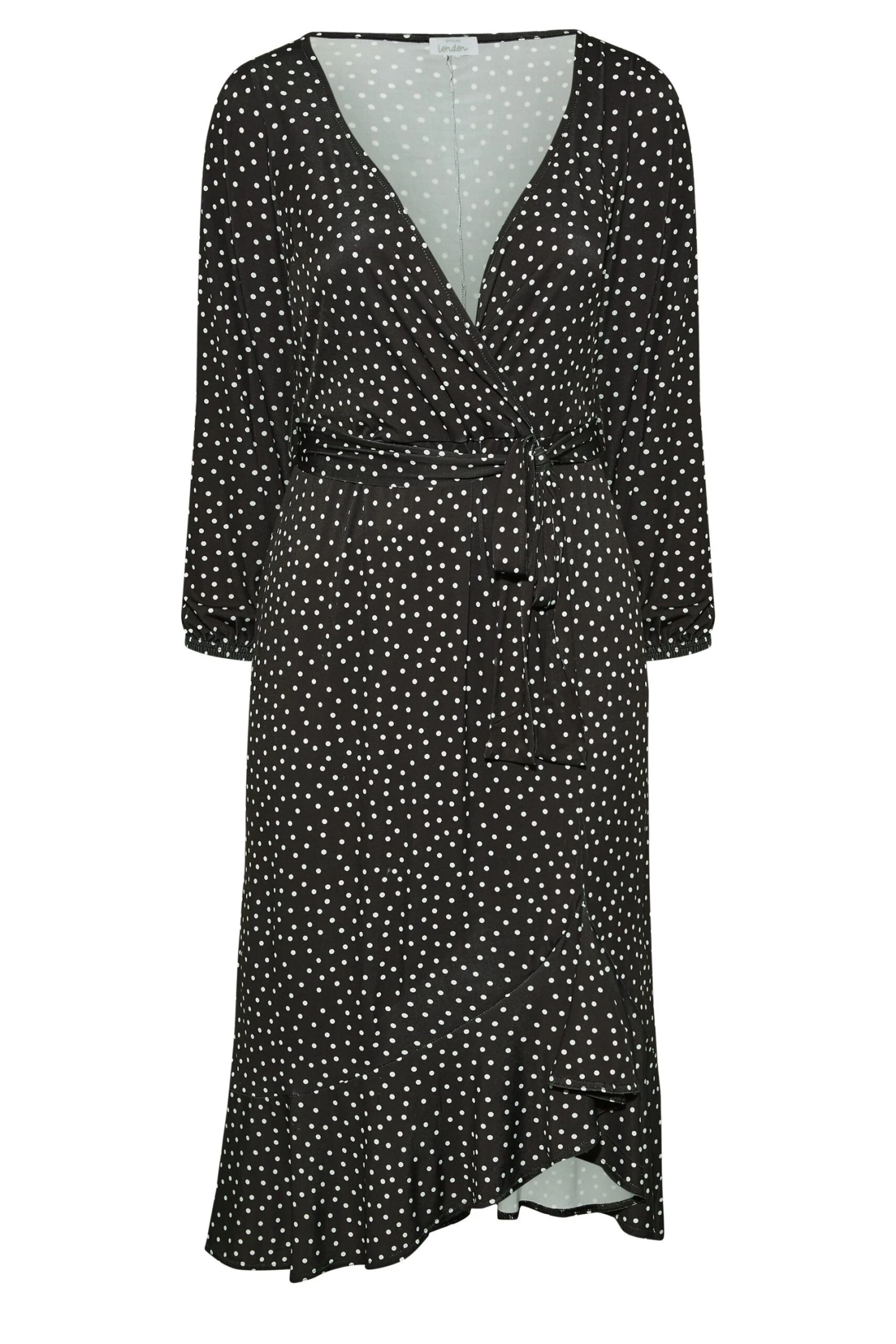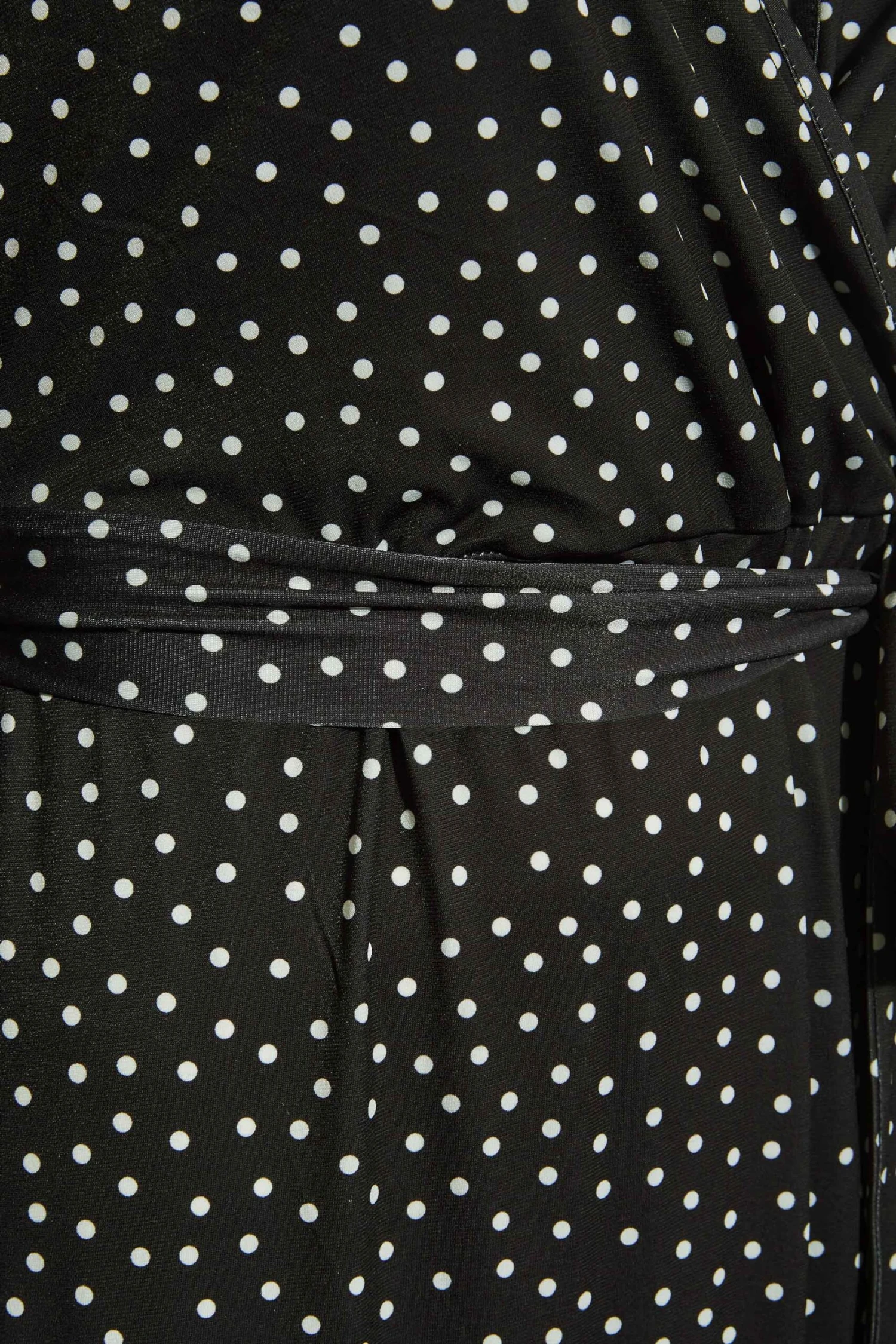 Complétez votre collection de robes cette saison avec notre robe noire cache-coeur à pois manches longues. Classe et féminine, vous allez l’adorer.