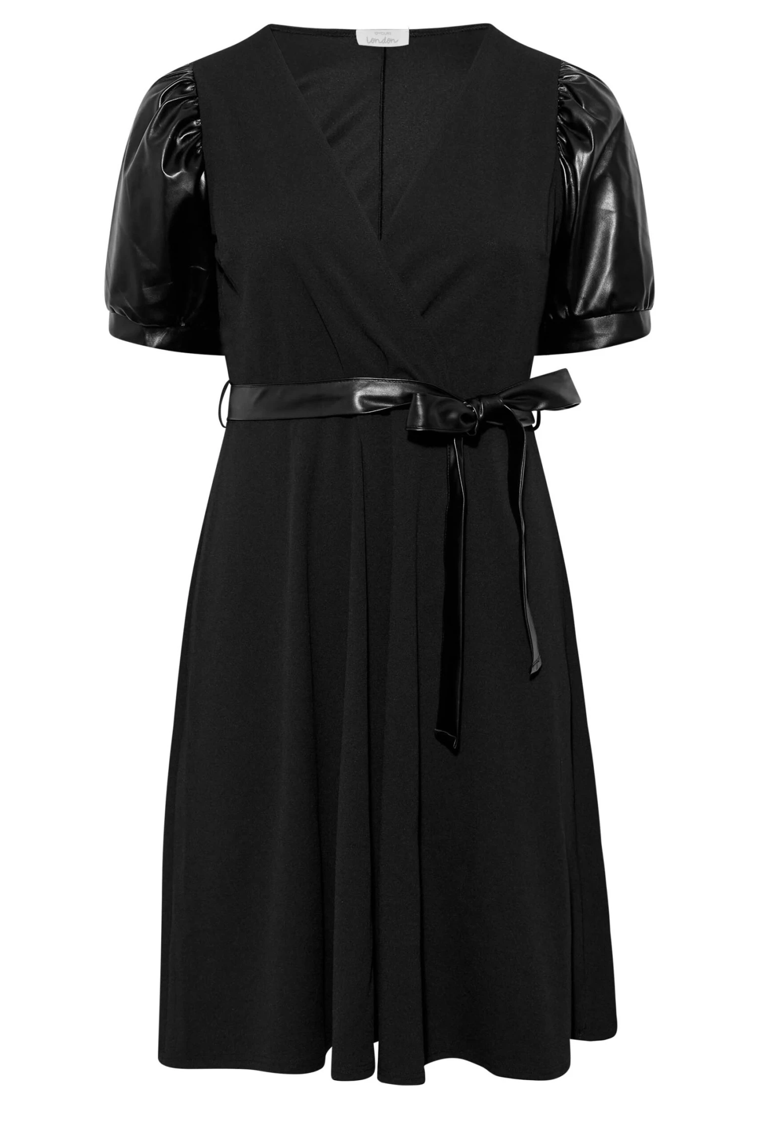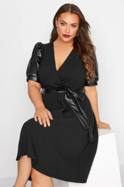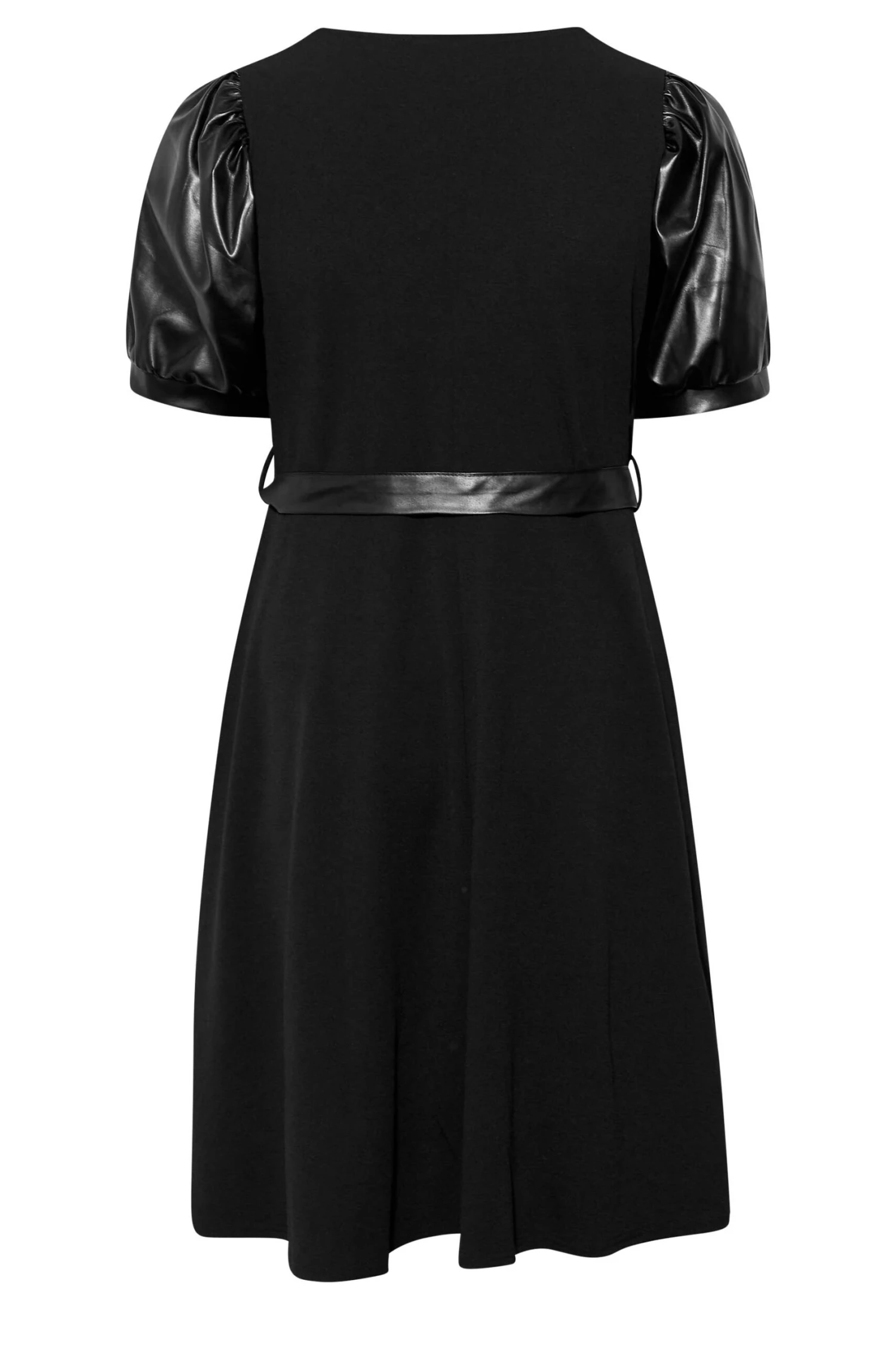 Une sortie en vue? Craquez pour notre robe noire manches courtes bouffantes effet cuir. Classe et fĂ©minine, vous allez l’adorer.