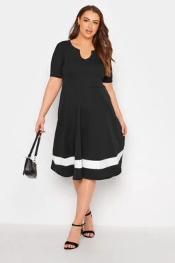 Soyez élégante et distinguée cette saison pour vos différentes sorties grâce à notre robe noire patineuse bande blanche. Rafinée et confortable, vous ne passerez pas inaperçue cet automne en portant notre sublime robe Yours London.