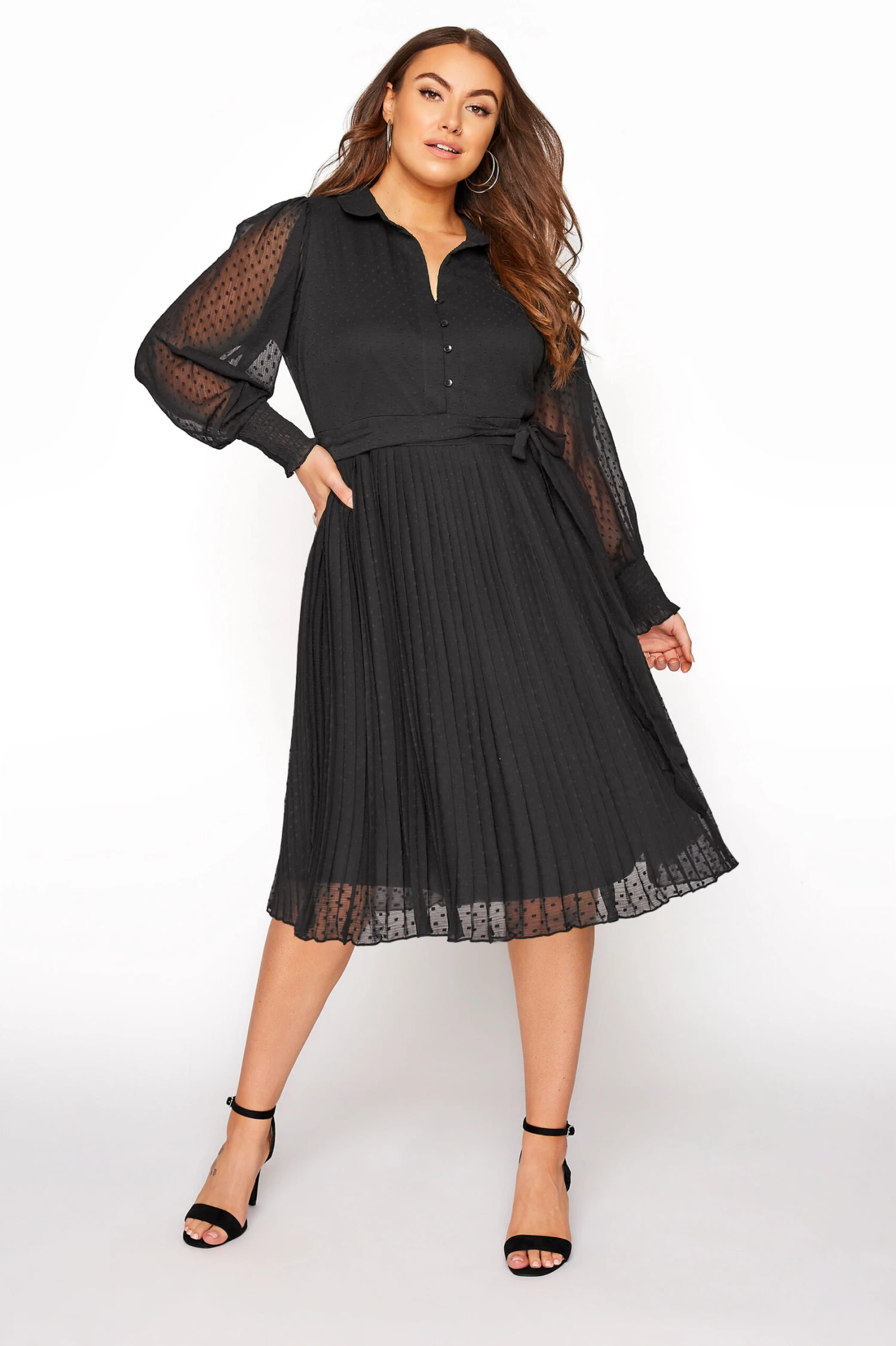 Craquez pour notre robe noire plissée manches à pois Yours London. Classe et raffinée, vous allez l’adorer pour vos sorties cette saison.