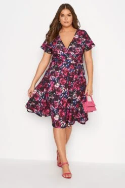 Ajoutez une touche de couleur à vos tenues avec notre robe rose patineuse cache-coeur floral rose. Féminine et classe, vous allez l’adorer.