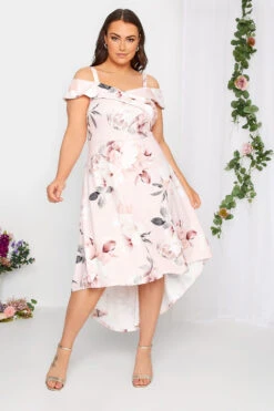 Resplendissez lors de vos sorties avec notre robe rose poudré floral en bardot. Classe et raffinée, vous ne passerez pas inaperçue.