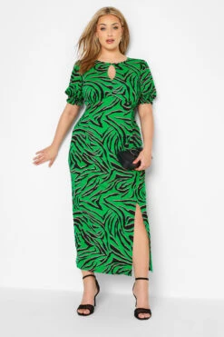 Ajoutez de la tendance à vos tenues de saison avec notre robe verte imprimé zébré. Confortable et colorée, vous pourrez la porter pour plusieurs de vos occasions.