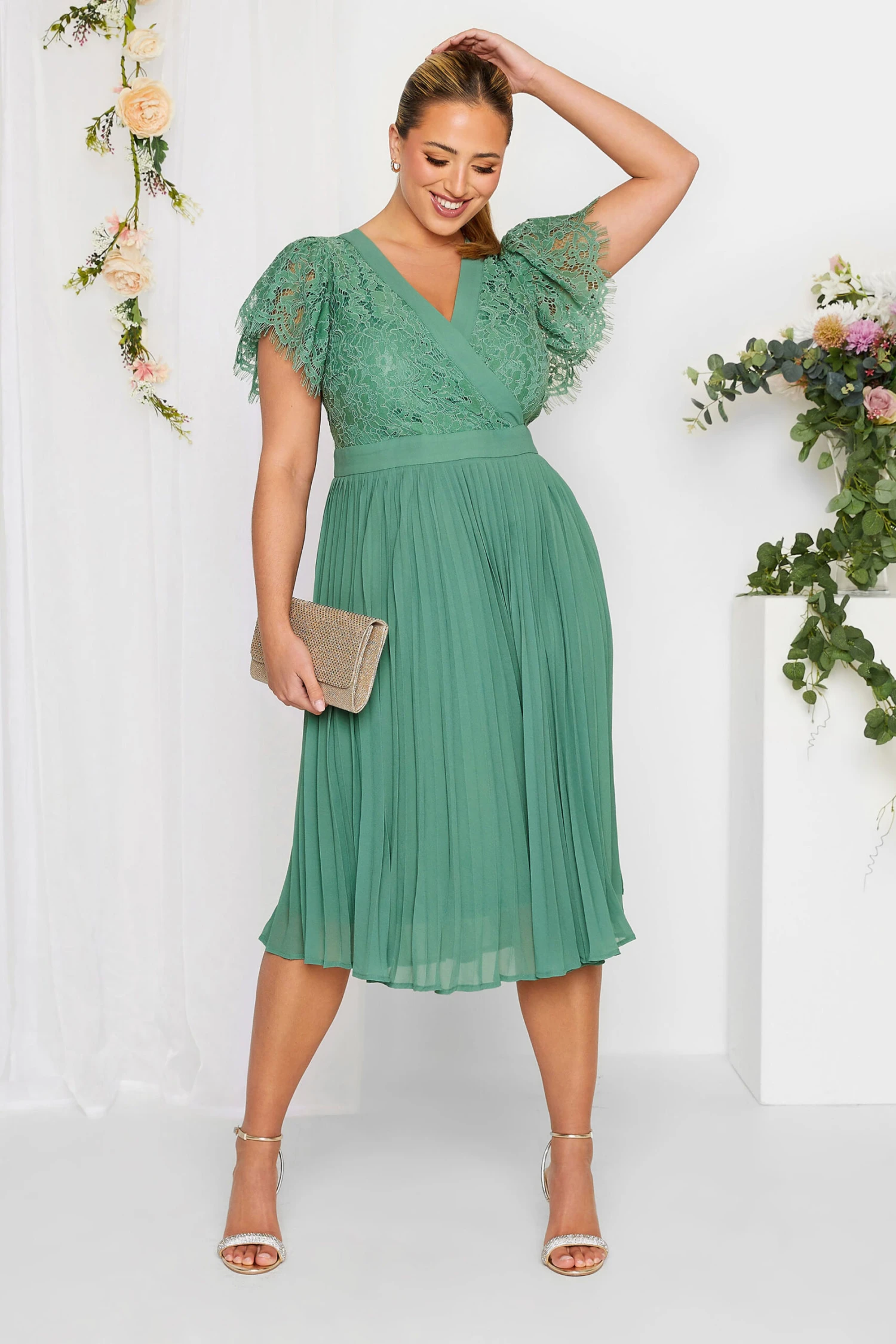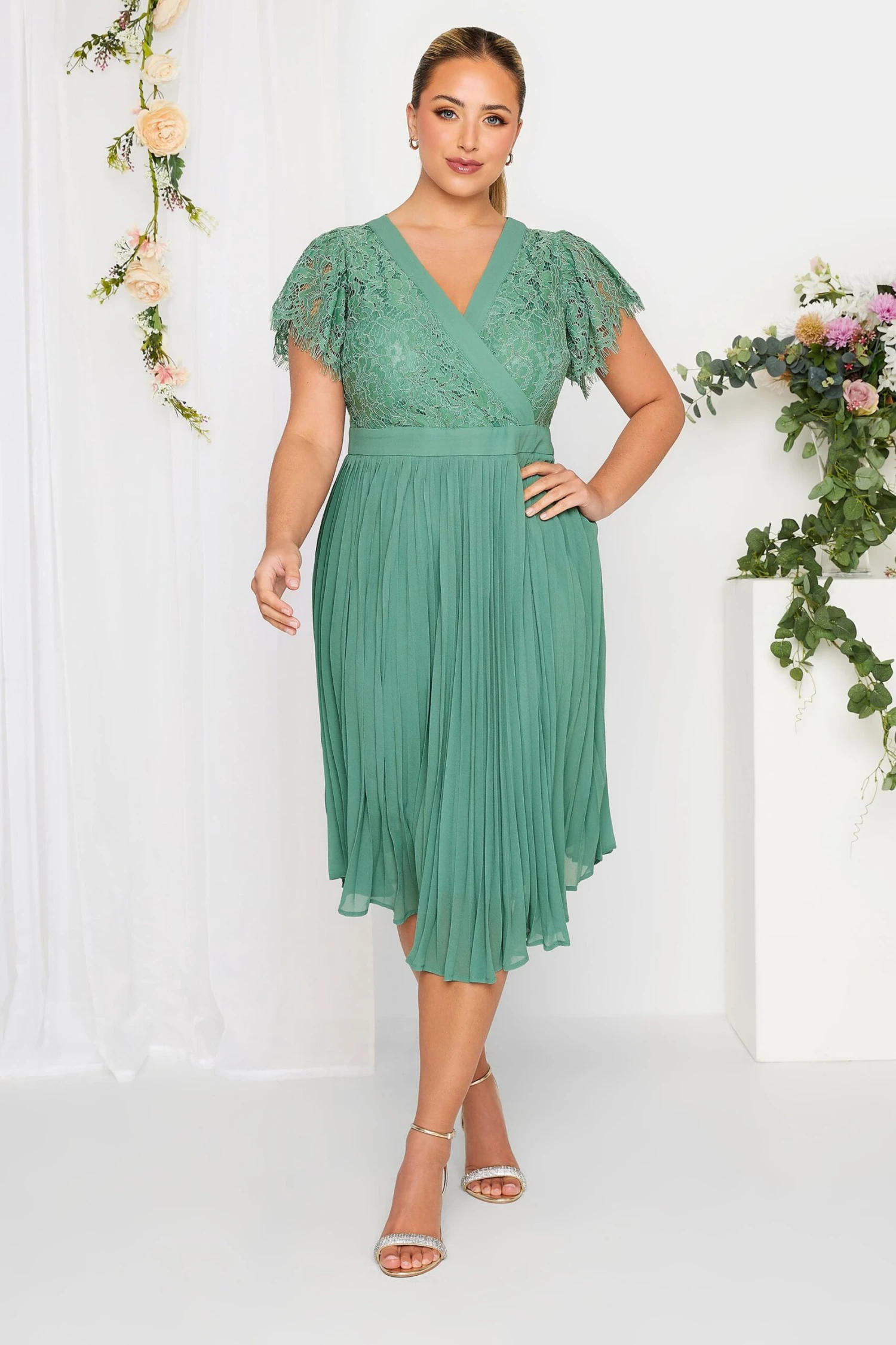 Soyez resplendissante en tant que demoiselle d’honneur ou en tant qu’invitée de mariage avec notre robe verte pastel dentelle volantée Yours London. Élégante, légère et raffinée, vous allez l’adorer!