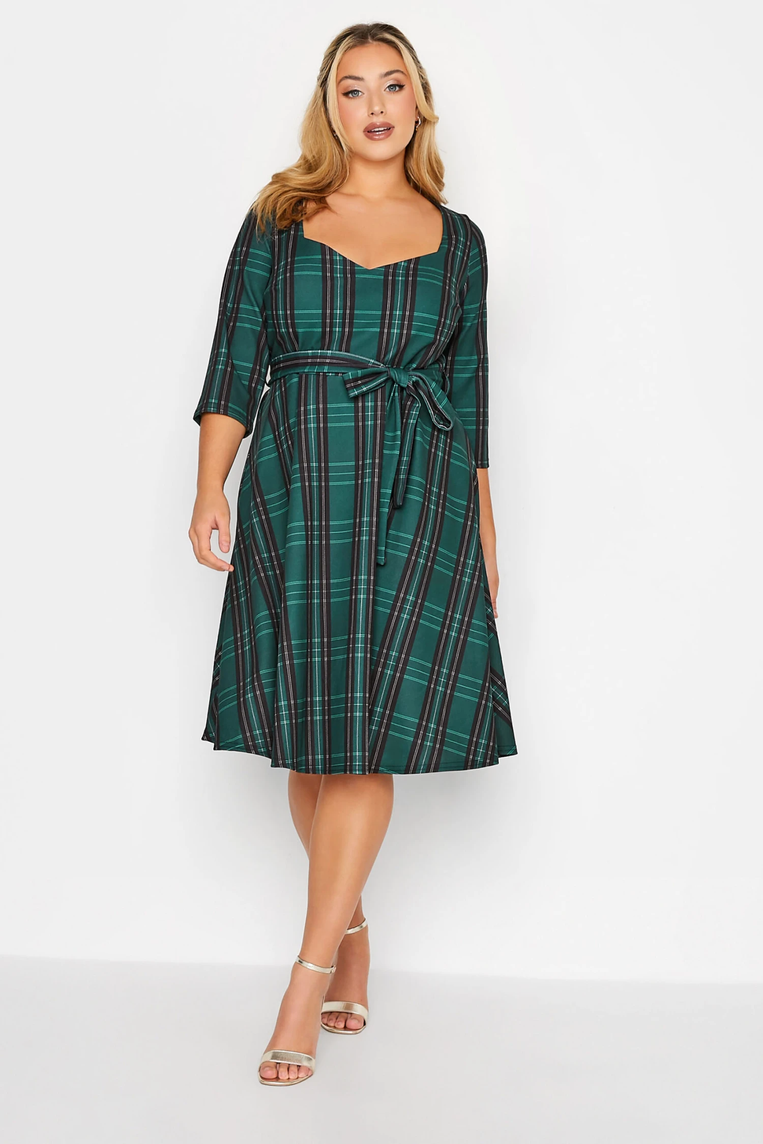 Resplendissez cette saison avec notre robe verte patineuse à carreaux. Raffinée et classe, vous pourrez la porter en plusieurs styles.