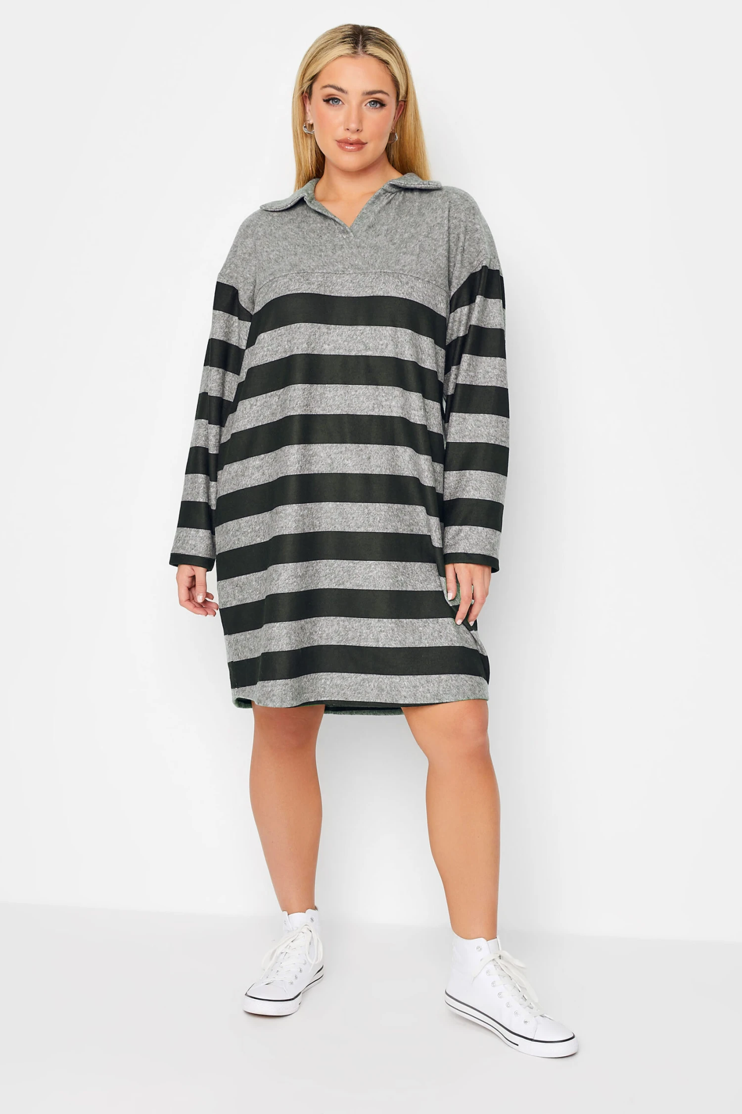 Craquez pour notre robe-pull rayures gris et noir manches longues. Pratique et tendance, vous serez confortable tout au long de la journée.
