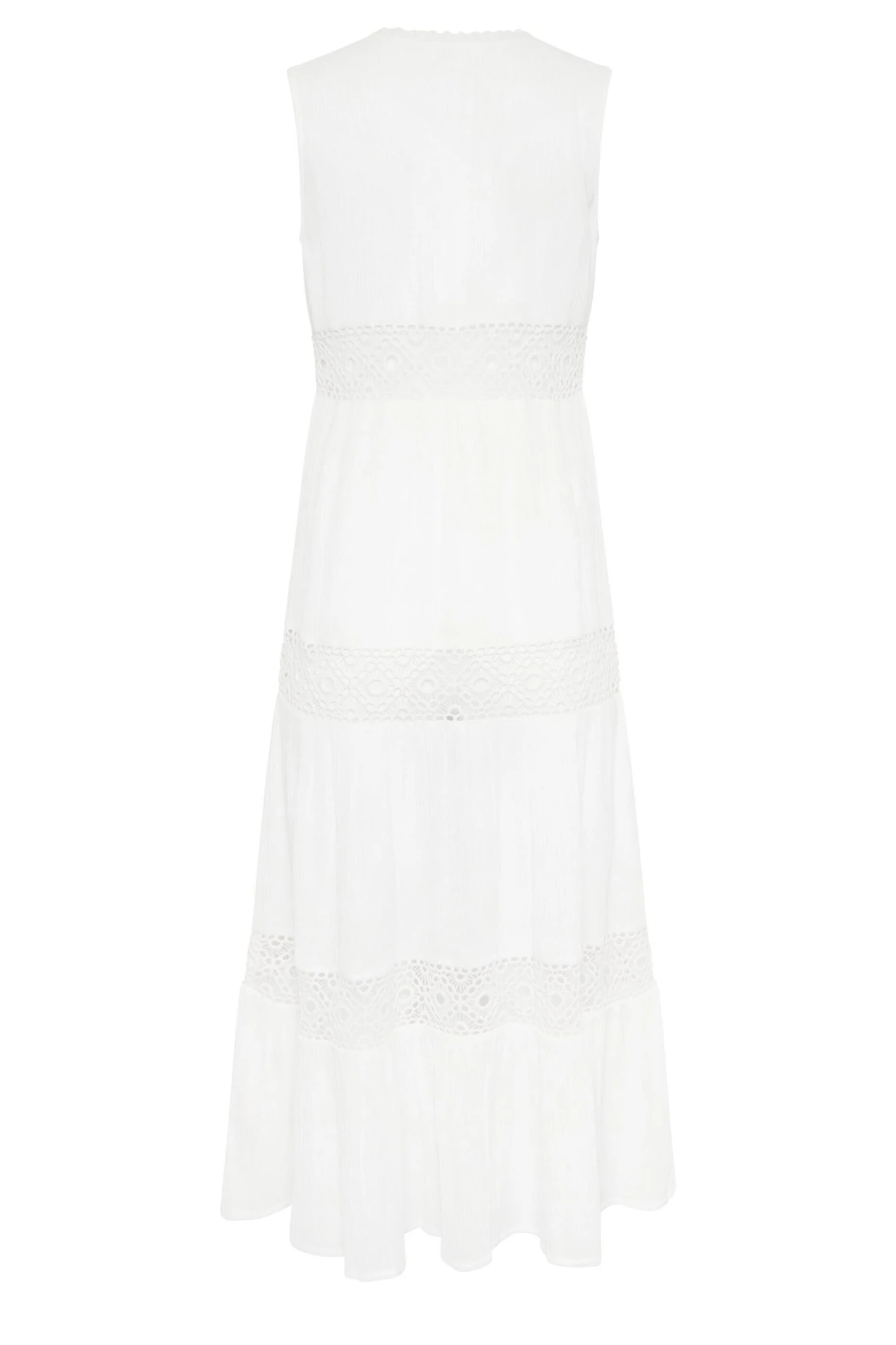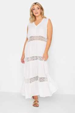 Resplendissez cet été en toute légèreté avec notre robe blanche maxi volanté design crochet. Féminine et délicate, vous allez l’adorer.