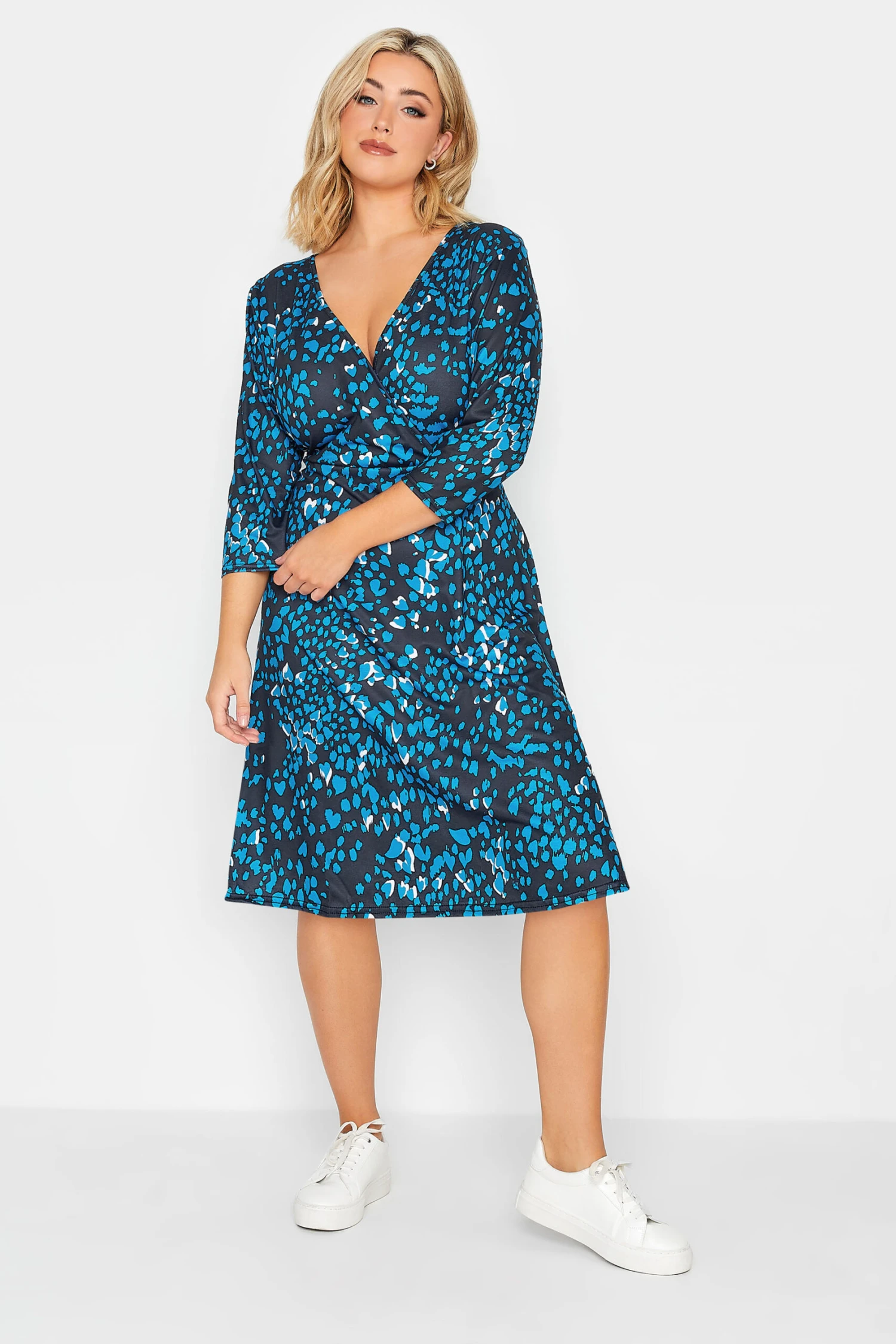 Ajoutez une touche de couleur à vos looks de saison avec notre robe bleue tâchetée animal cache-coeur en jersey. Féminine et confortable, vous allez l’adorer.