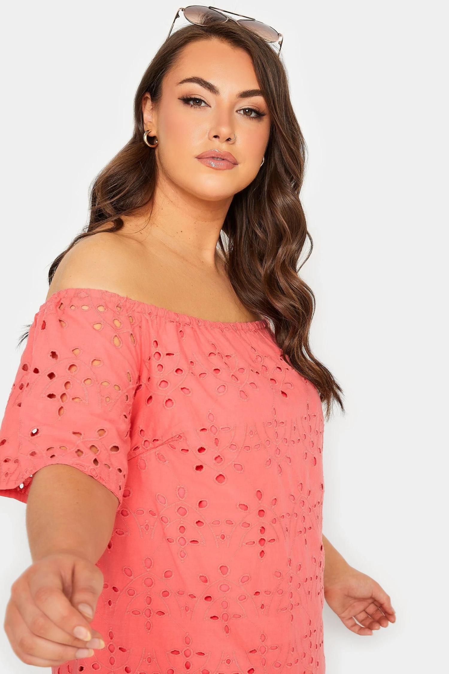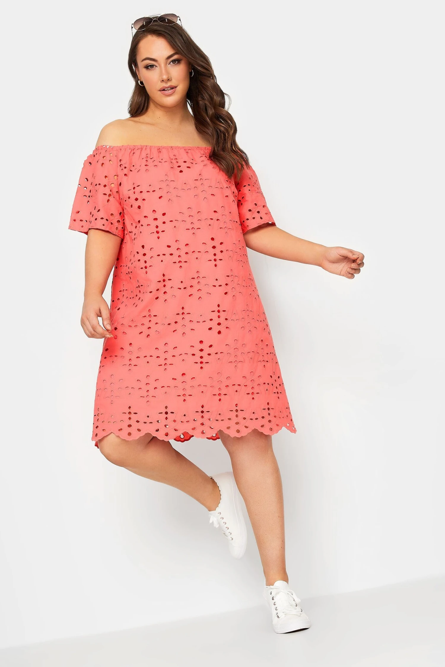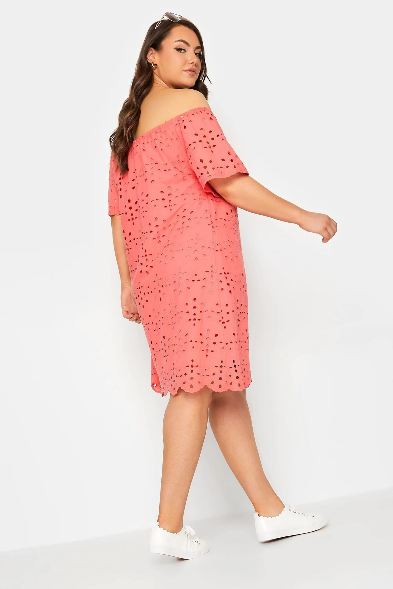 Ajoutez une touche de douceur à vos tenues de saison avec notre robe bardot rose corail broderie anglaise. Tendance et féminine, vous allez l’adorer cet été.