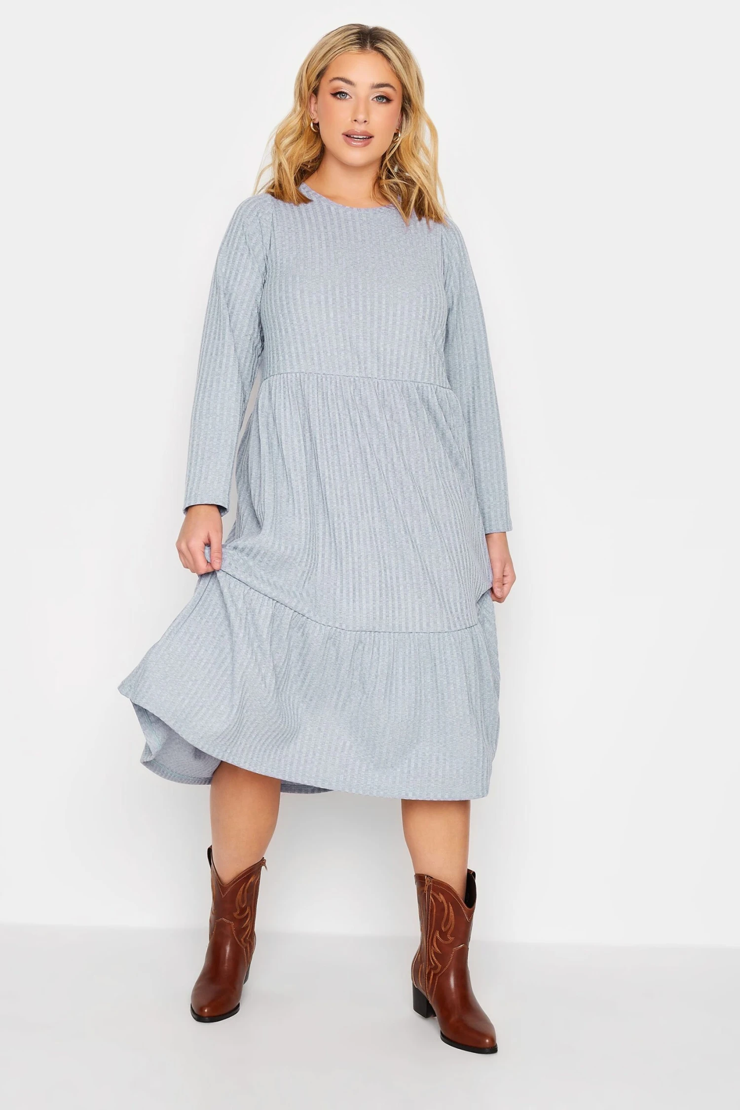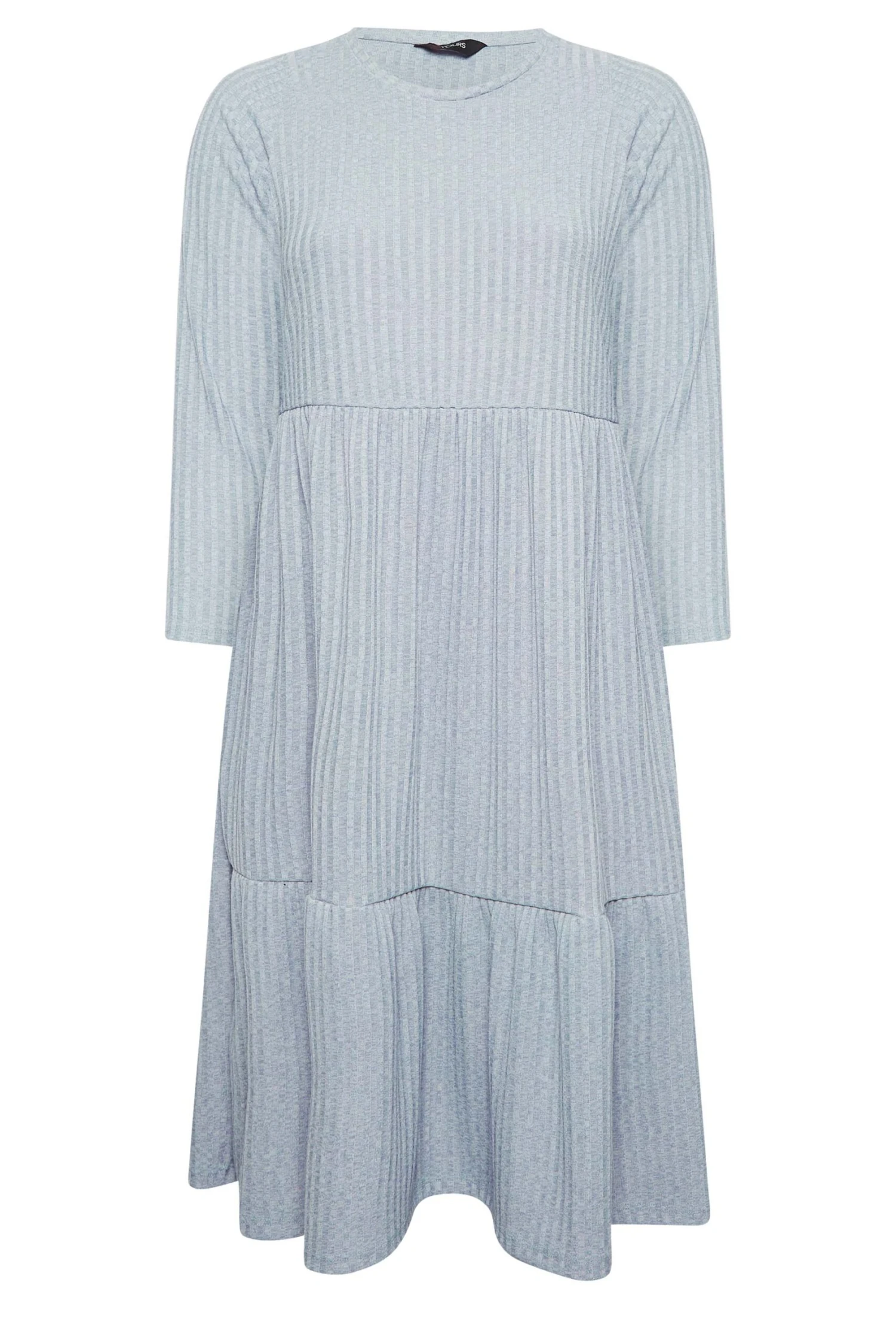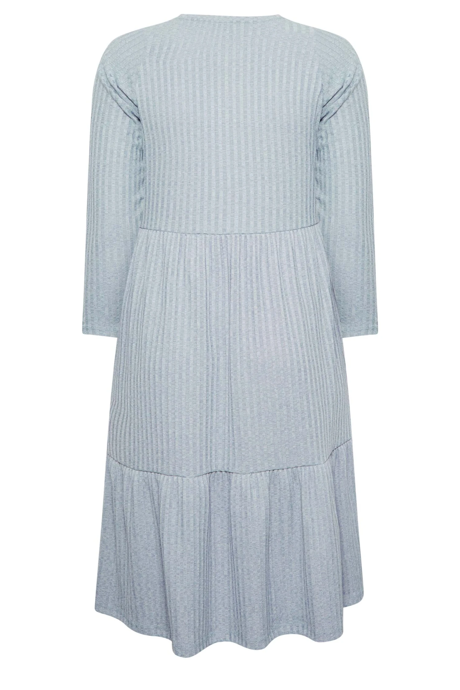 Craquez pour notre robe bleue midi nervurée volantée. Cosy et féminine, vous allez adorer la porter pour vos différentes occasions.