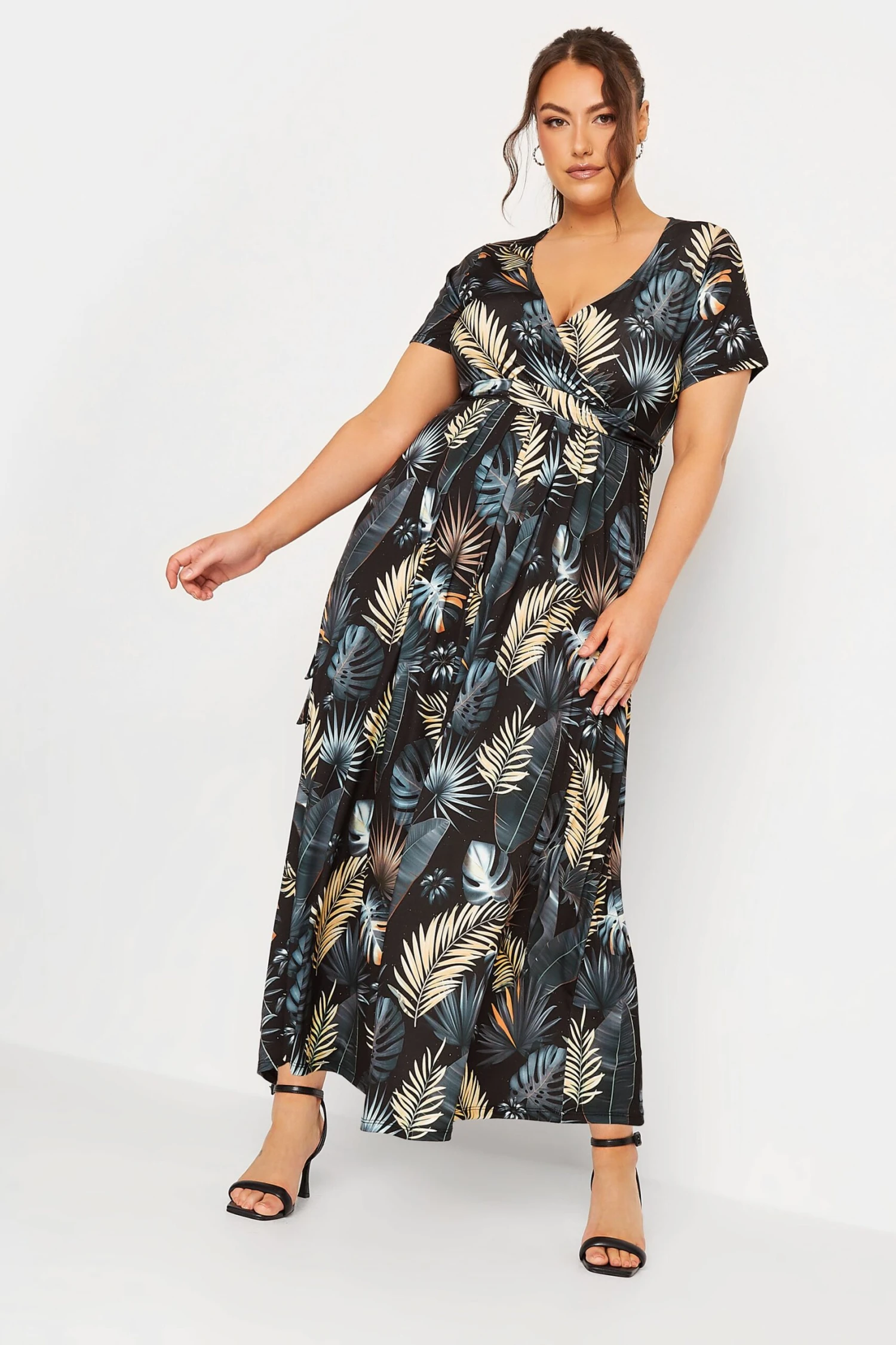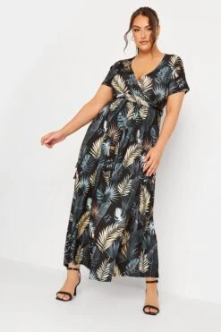 Resplendissez cette saison avec notre robe cache-coeur en gris charbonneux feuilles tropicales. Féminine et raffinée, vous allez adorer la porter cette saison.