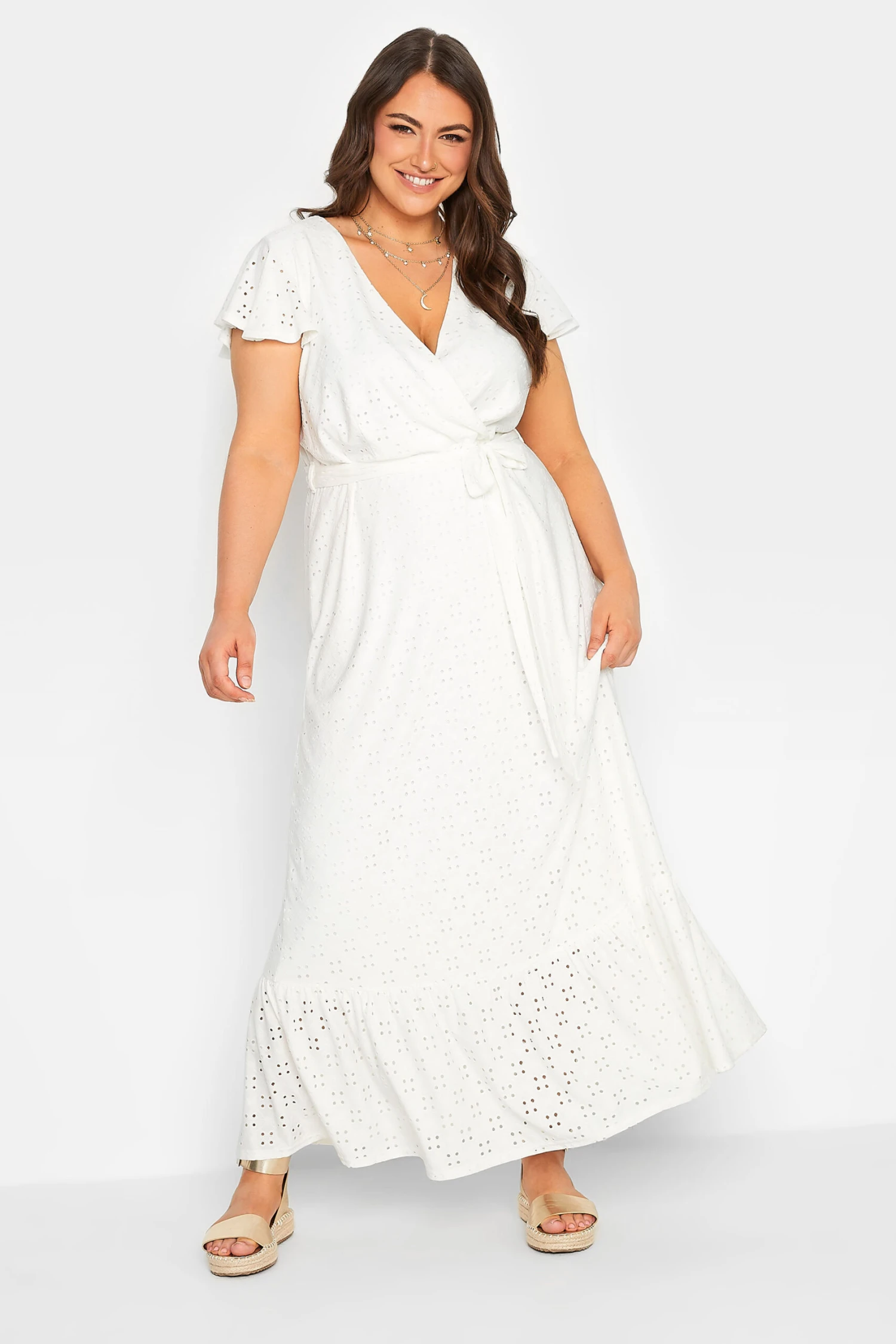 Craquez pour notre robe maxi blanche cache-coeur broderie. FĂ©minine et classe, vous allez l’adorer cette saison.