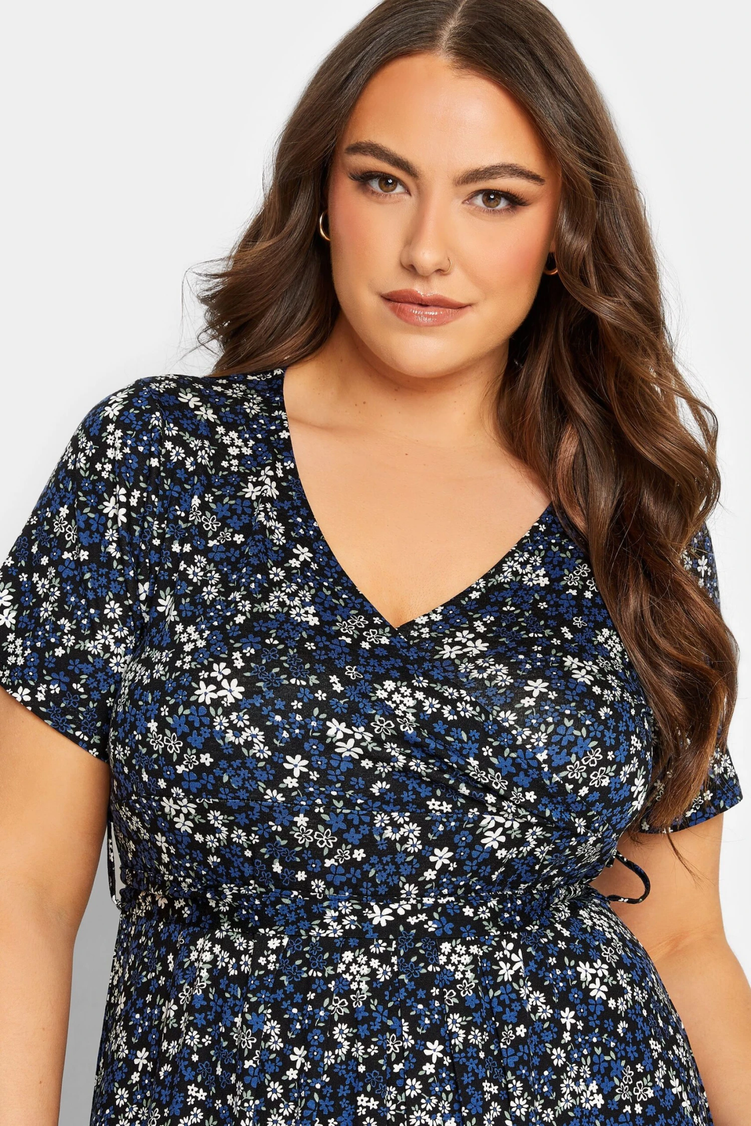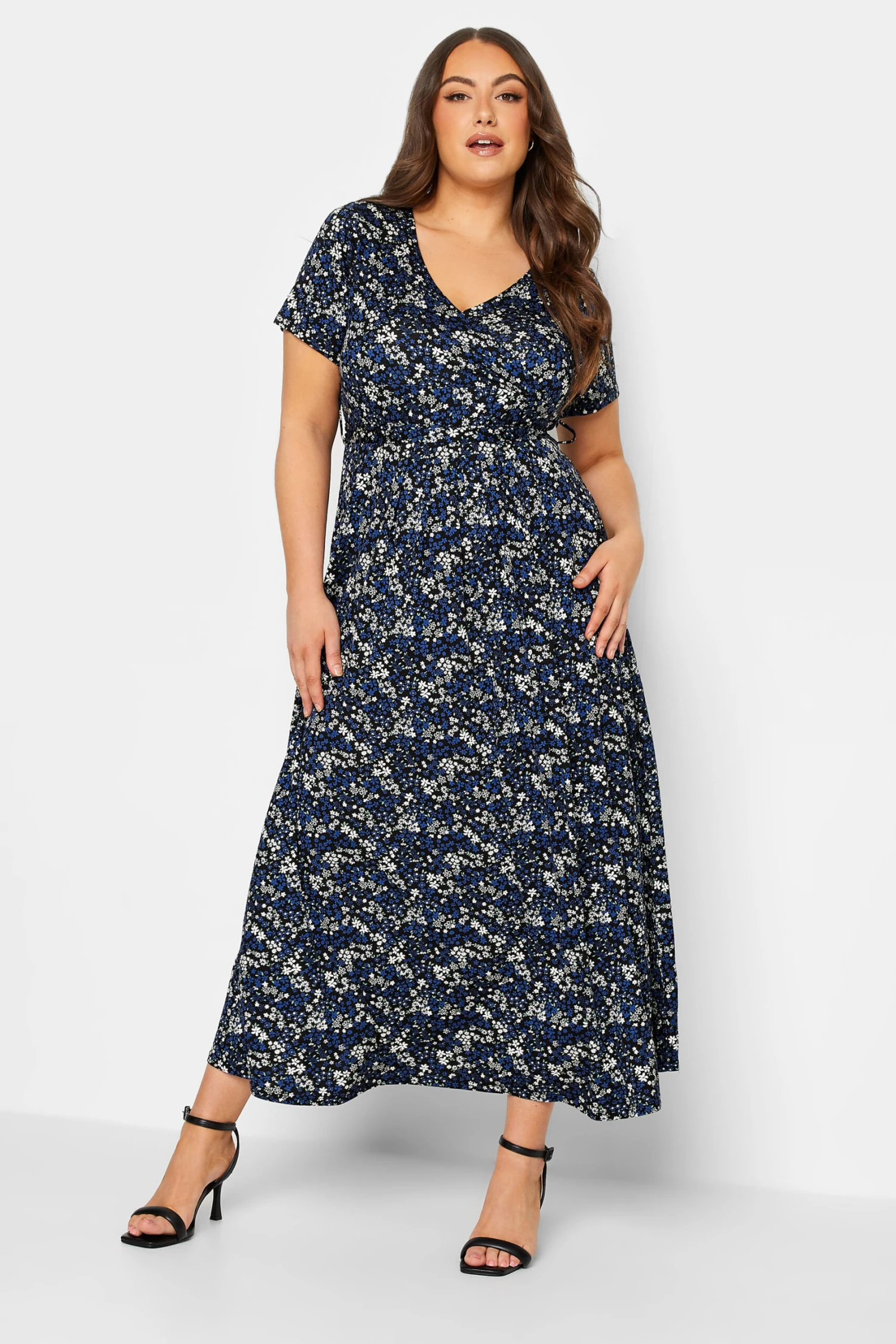 Craquez pour notre robe maxi bleue marine floral cache-coeur. Tendance et fĂ©minine, vous allez l’adorer.